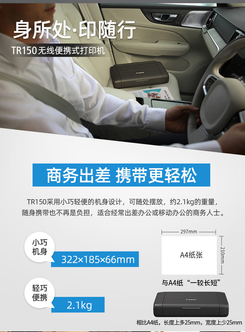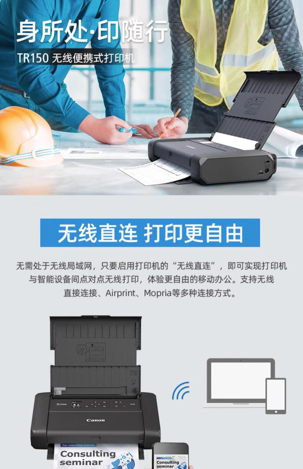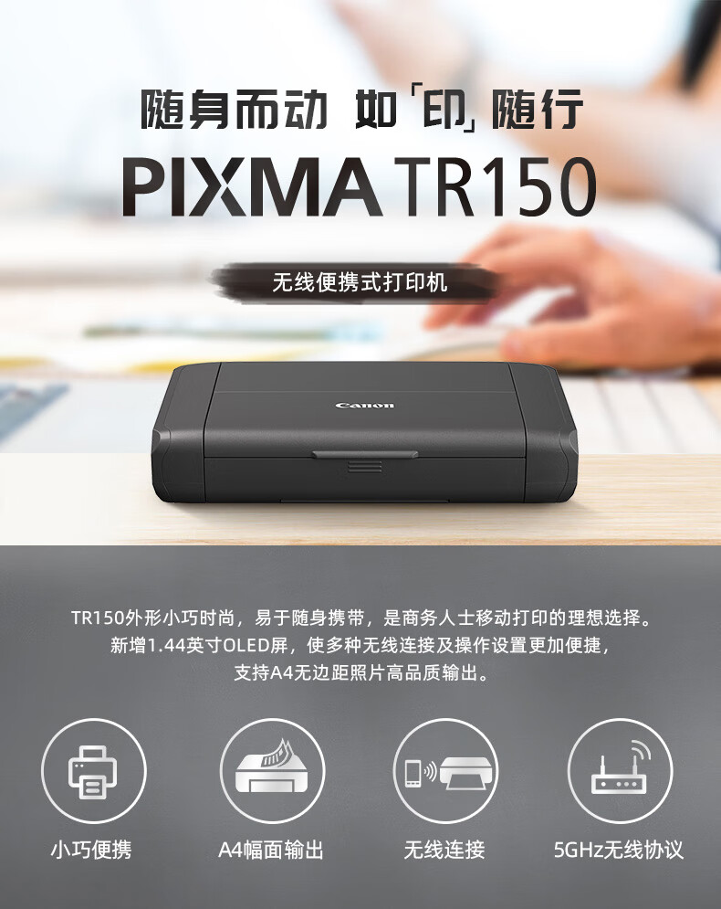 佳能/CANON TR150 A4 彩色打印机 无线彩色便携式打印机