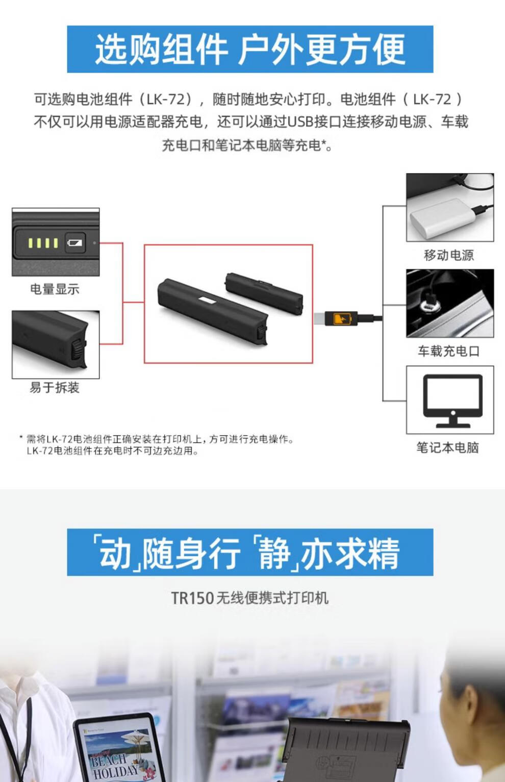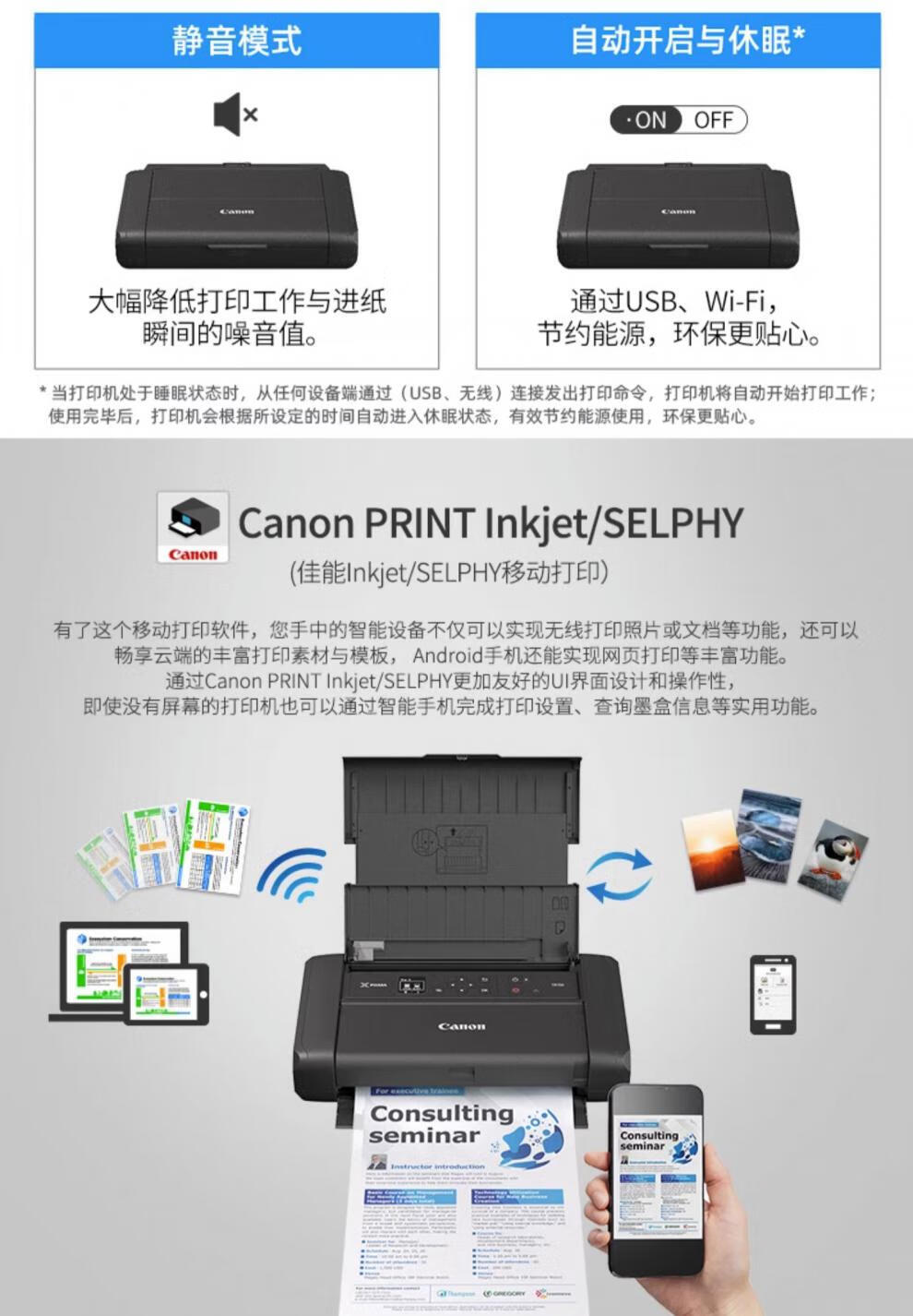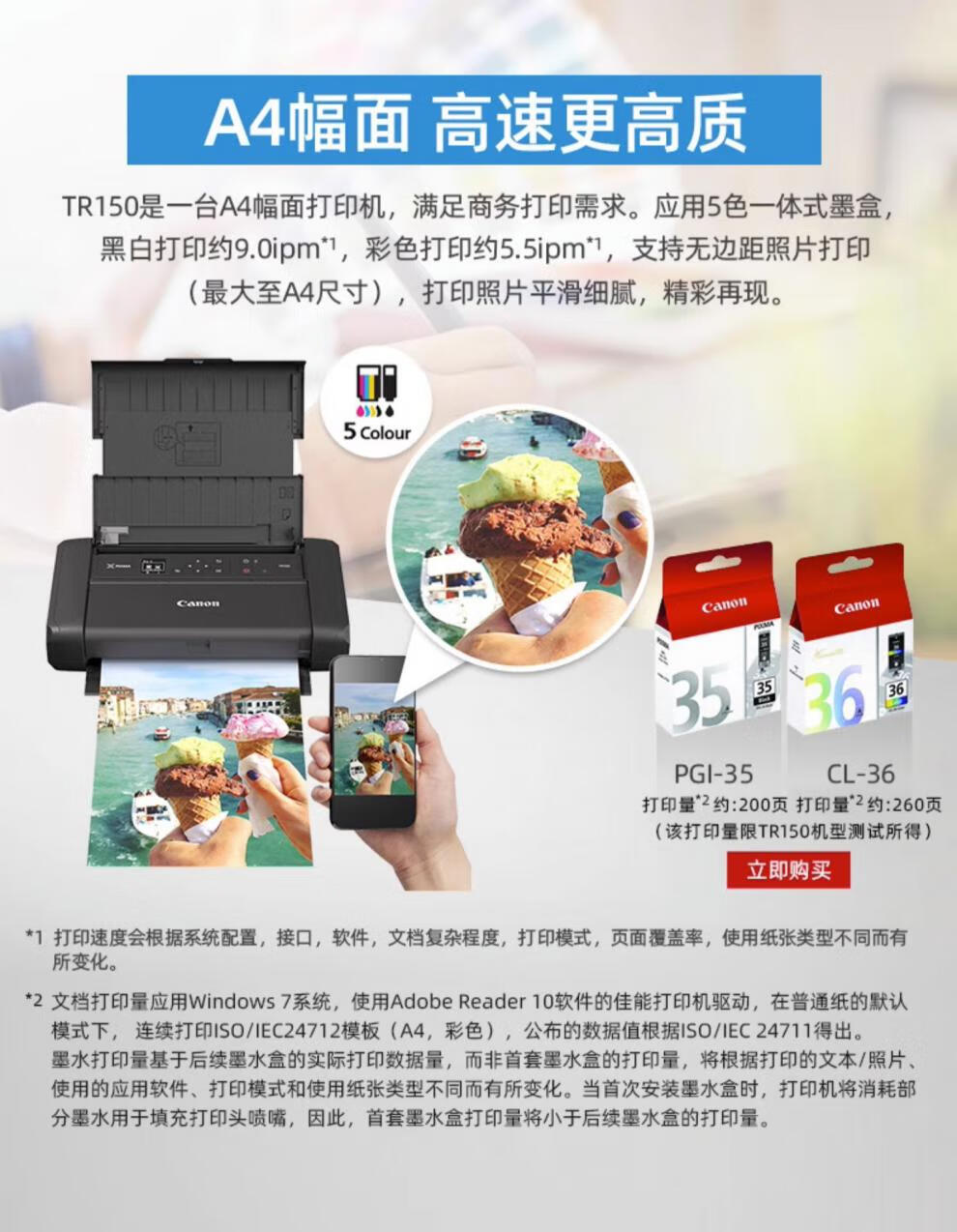佳能/CANON TR150 A4 彩色打印机 无线彩色便携式打印机