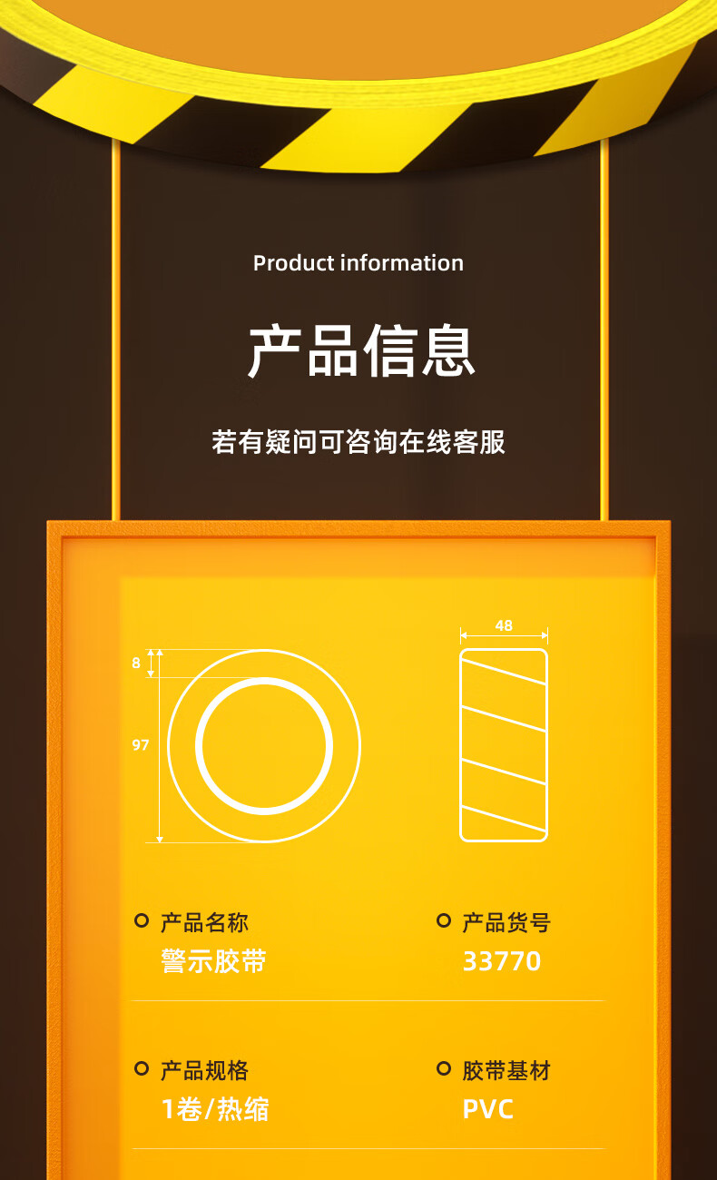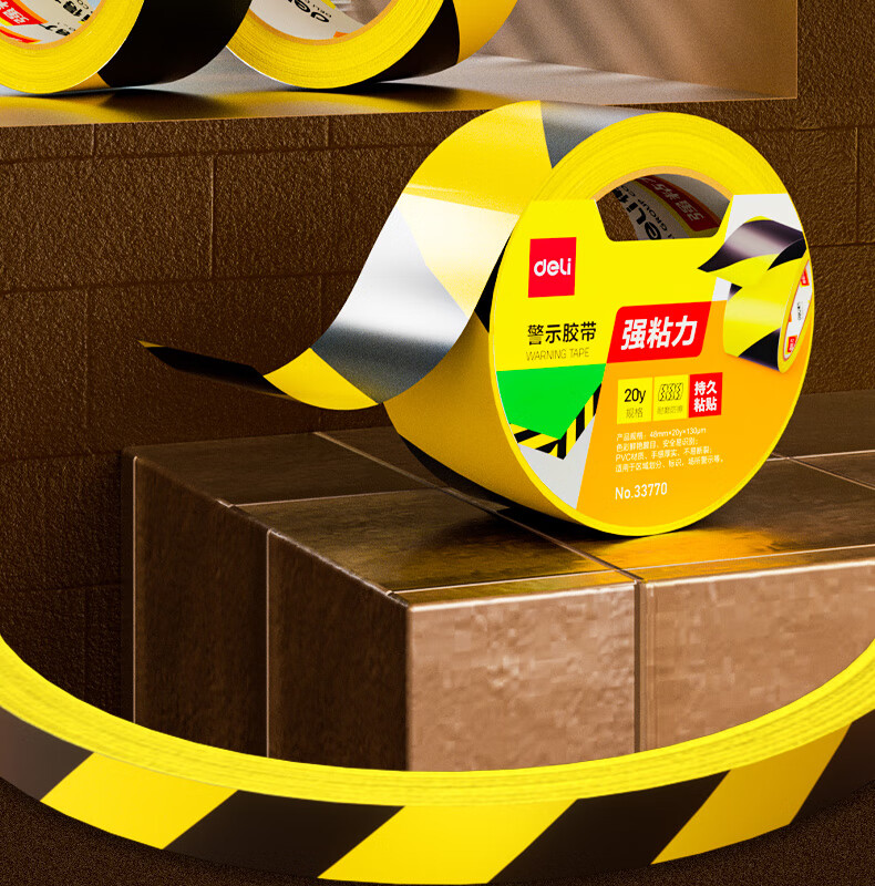 得力/deli 33770 胶带 米字贴窗固定加厚PVC耐磨防水地标线胶带警戒斑马线5S定位 48mm*20y 1卷