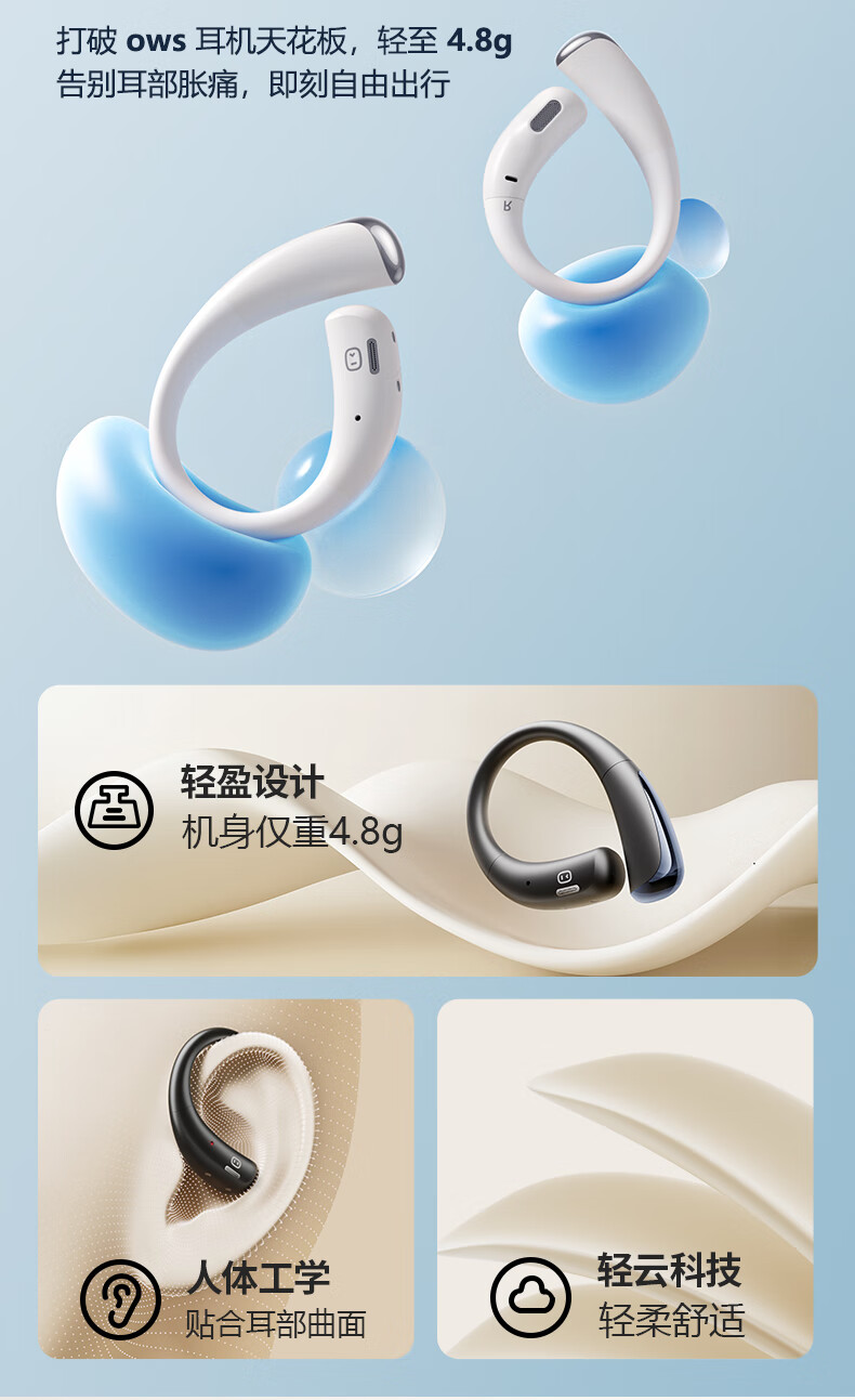 小度 S200 耳机/耳麦 蓝牙耳机挂耳式开放不入耳骨传导概念高音质运动防水 紫色