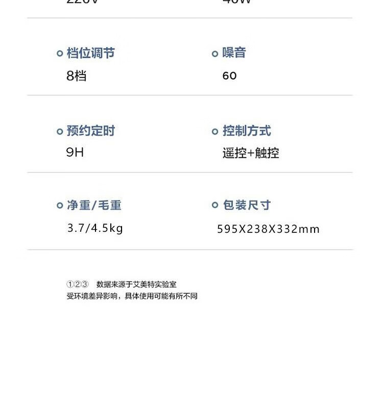 艾美特/Airmate FA18-SRD186风扇 语音遥控款循环扇 40w-8档