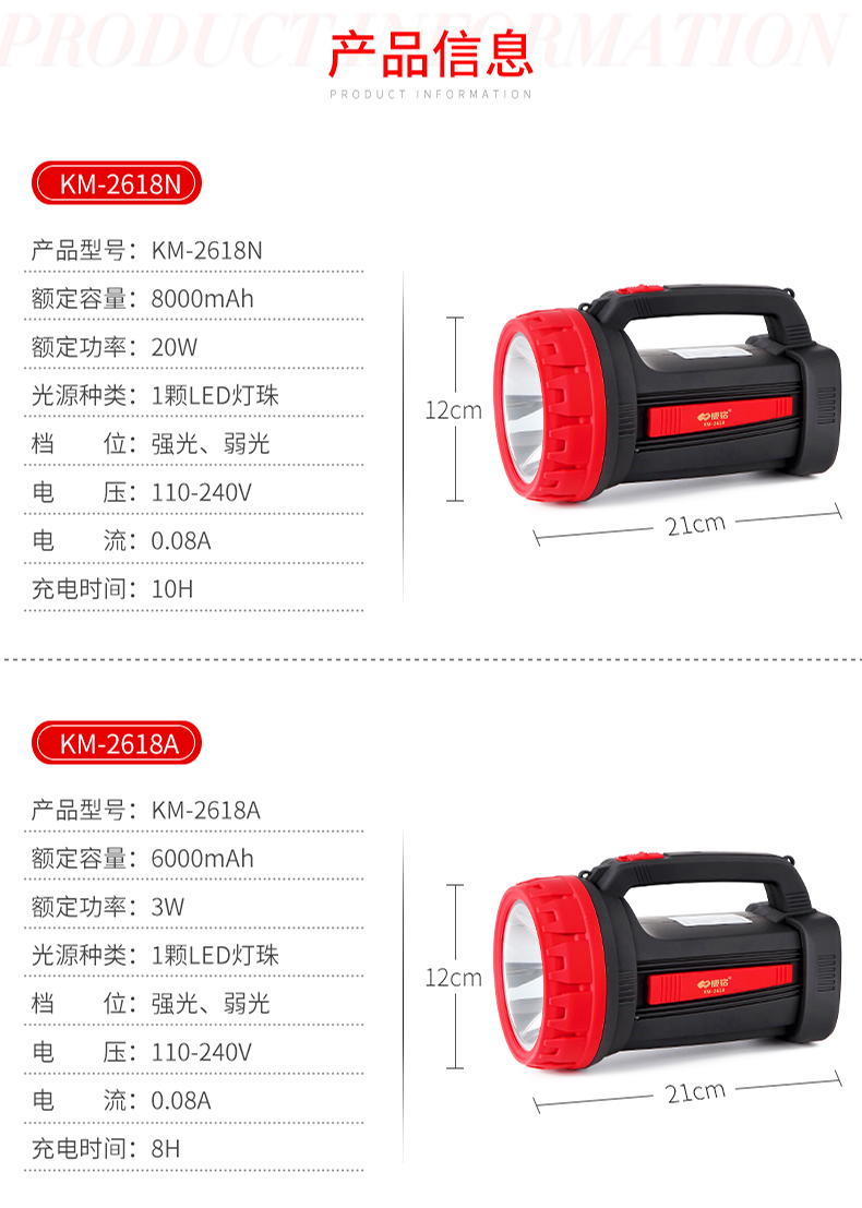 康铭/KANGMING KM-2618N 应急照明灯 升级版20W(8000毫安)