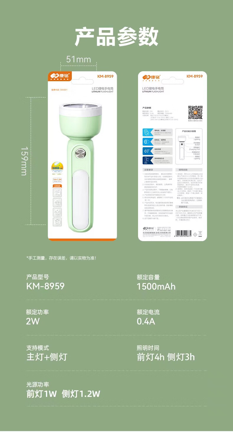 康铭/KANGMING KM-8959 应急照明灯 手电筒【带侧灯】