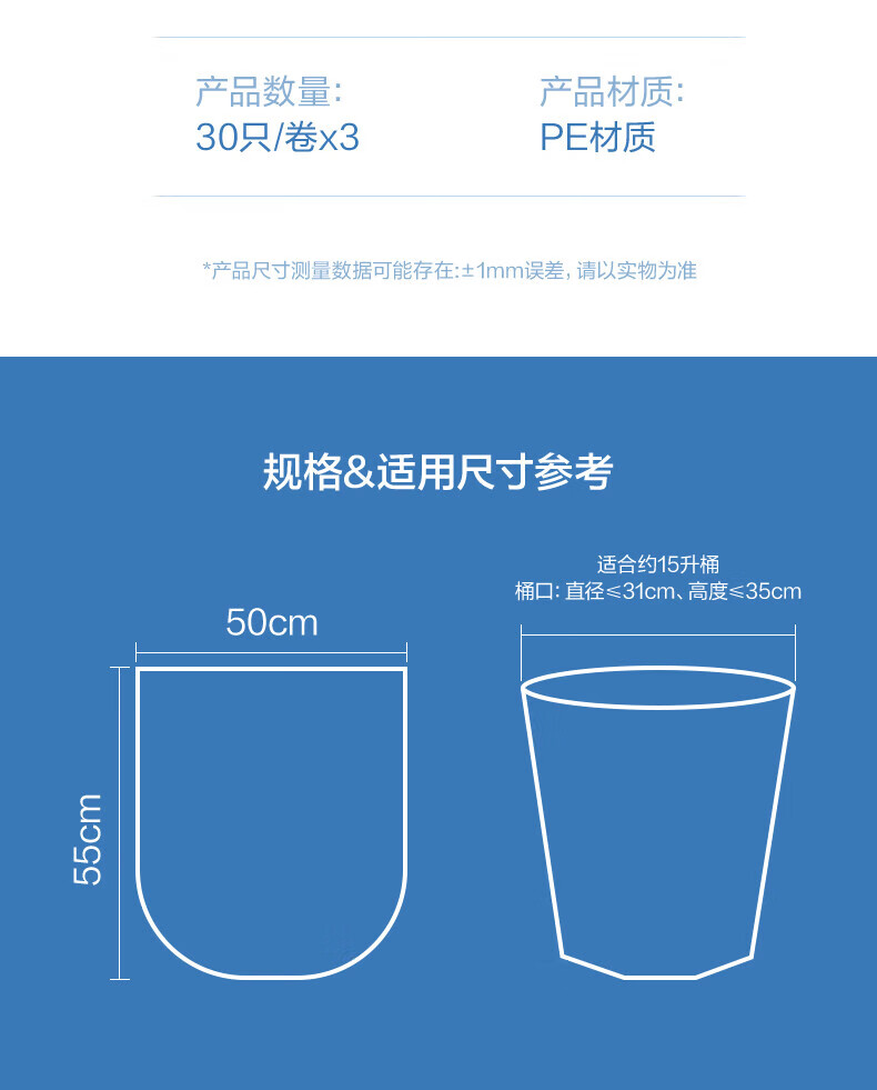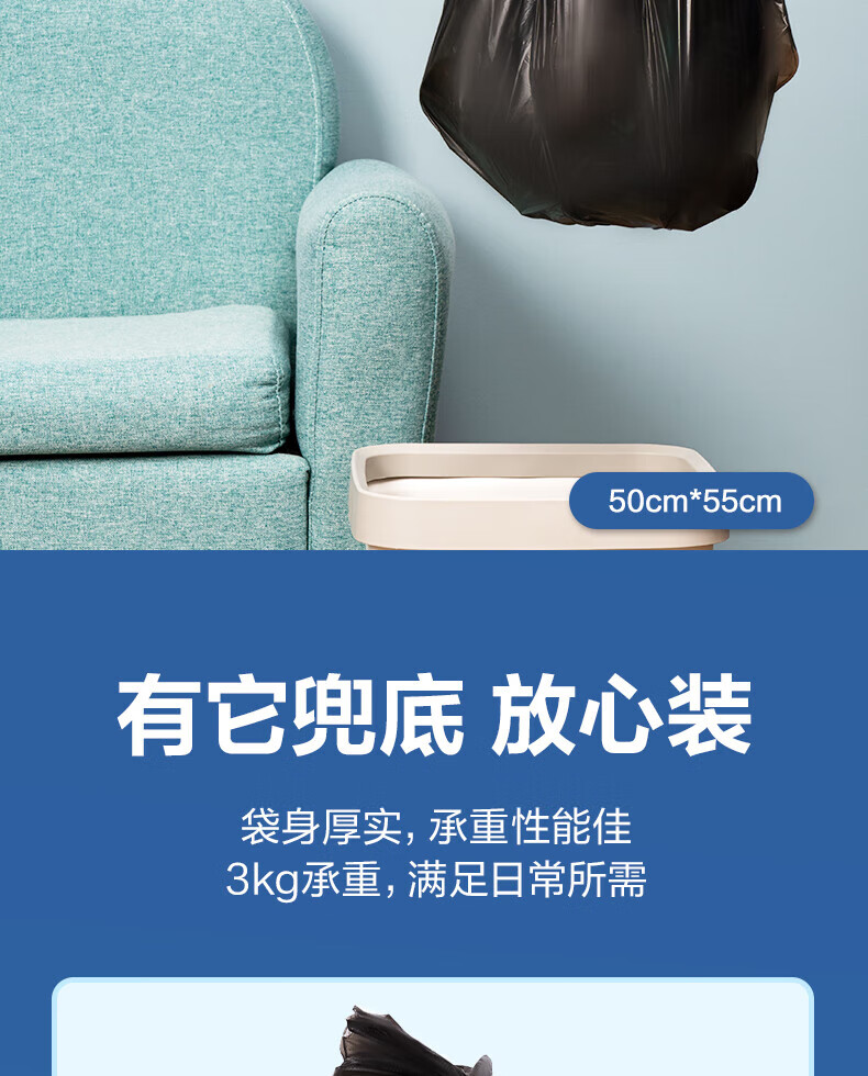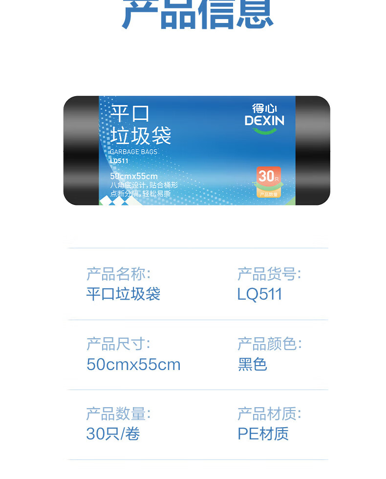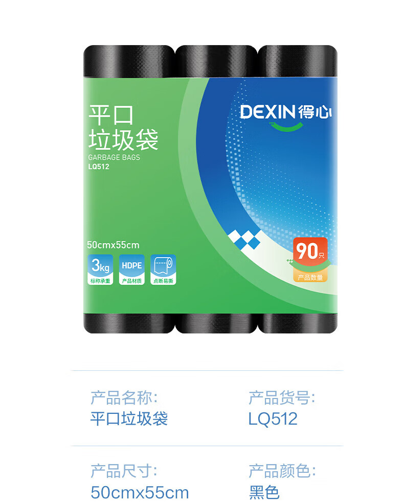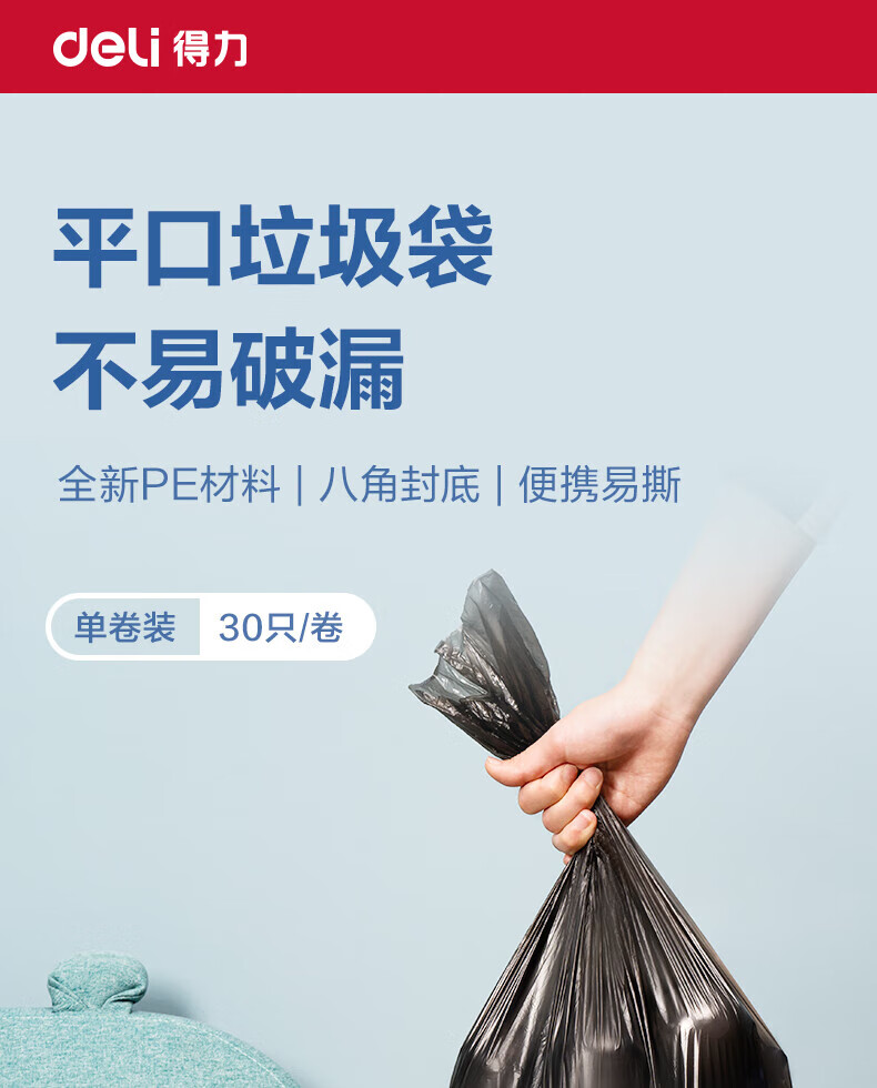 得力/deli LQ511 塑料制品 垃圾袋50x55cm 黑色 160卷/箱 30只/卷