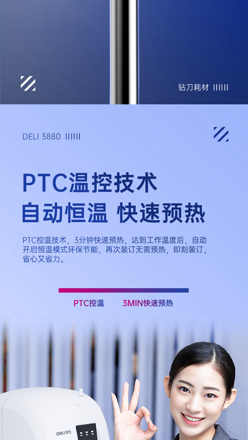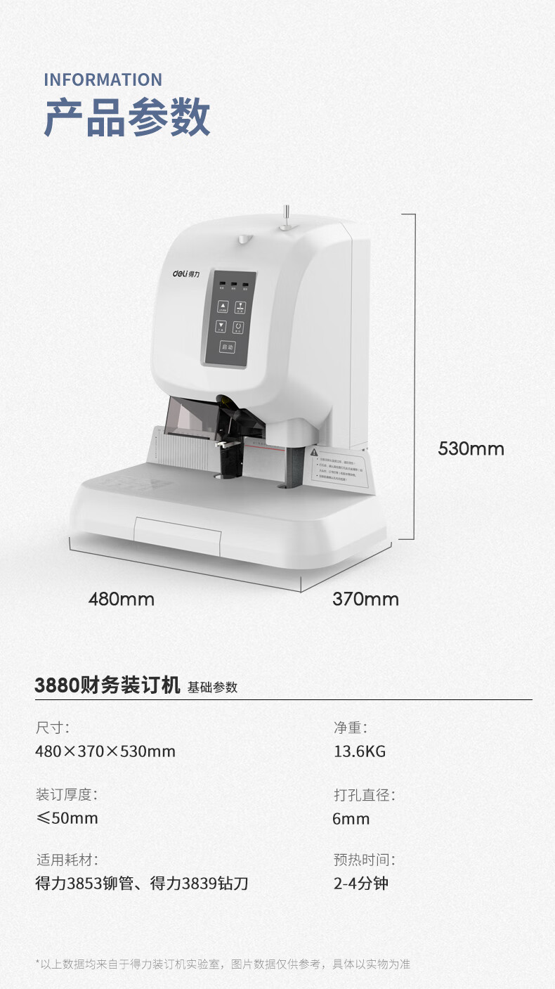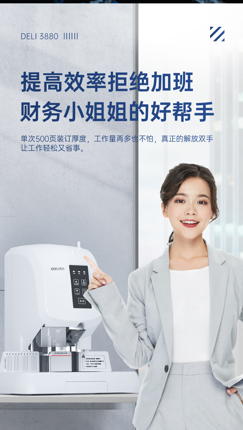 得力/deli 3880 装订机 装订机50mm会计凭证自动装订机500页财务装订机