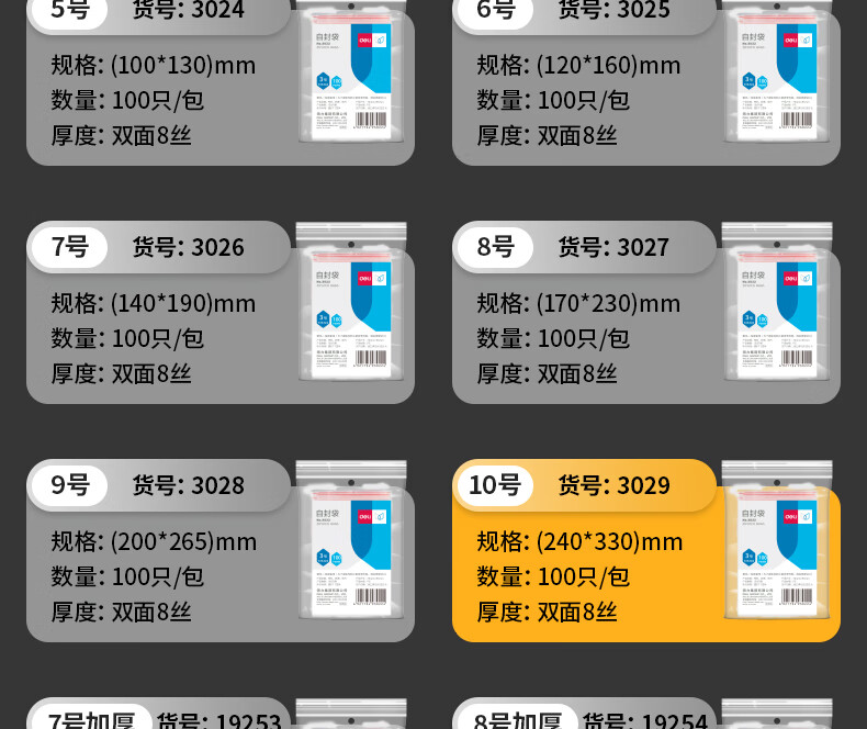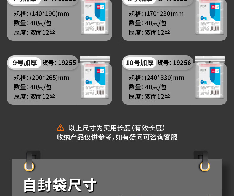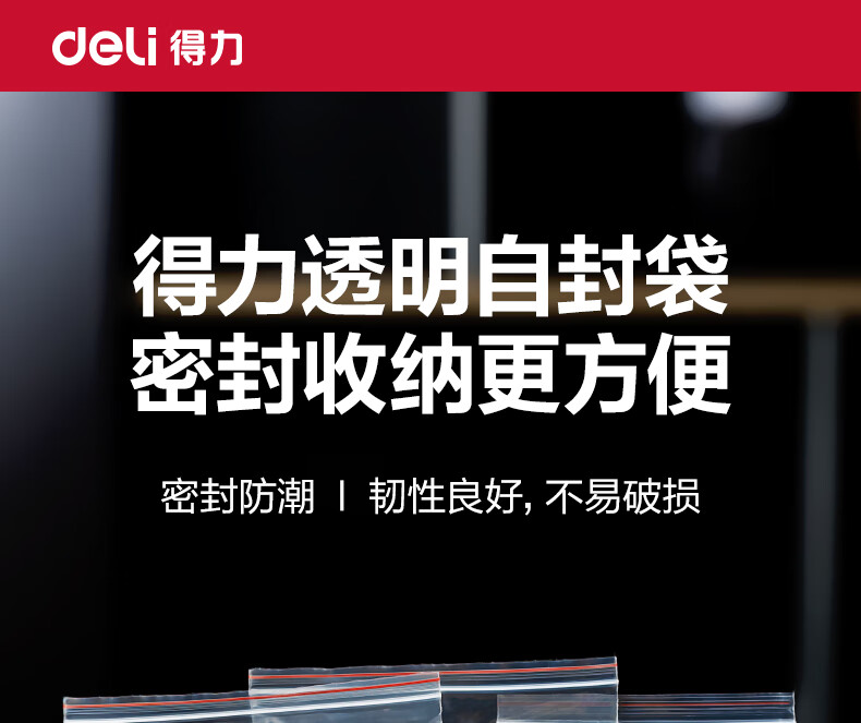 得力/deli 3029 塑料制品 食品密封袋10号33*24cm 防水防尘保鲜收纳PE透明 100只