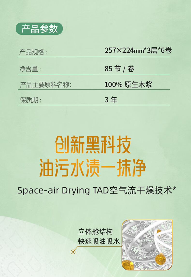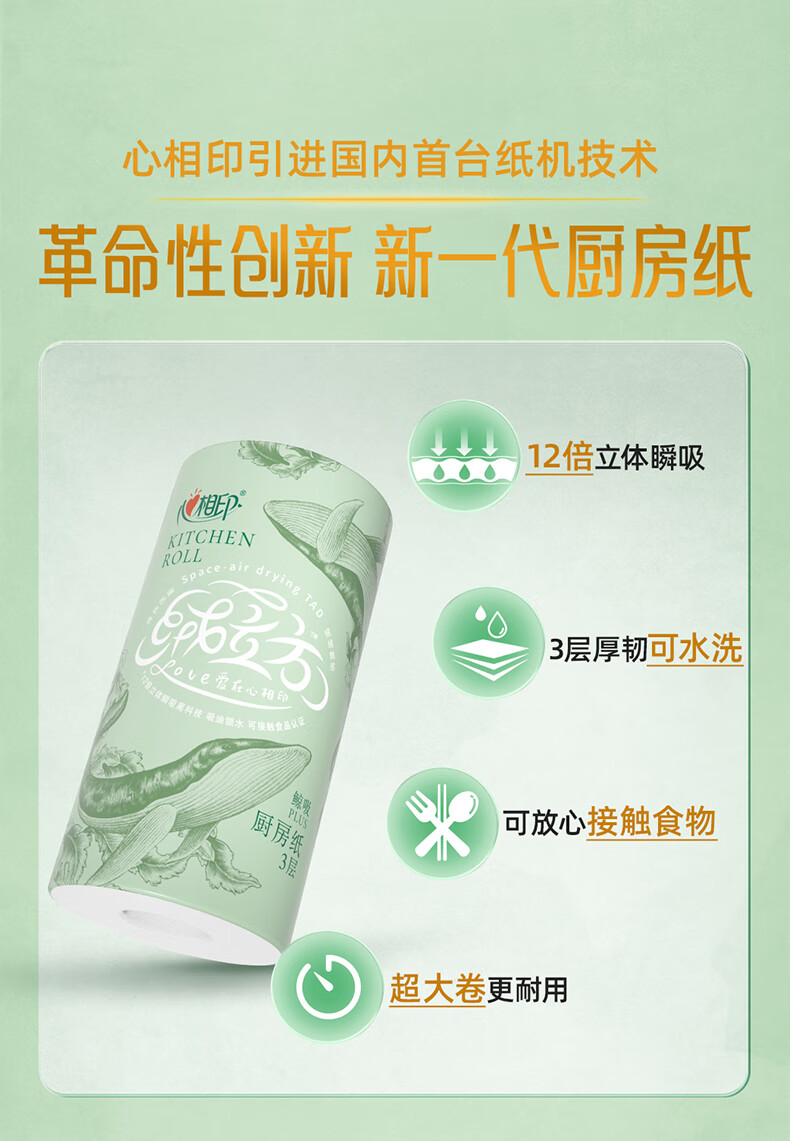 心相印/MindActUponMind TKT1085 卷类卫生纸 心相印绒立方6粒装85节印花厨房纸巾