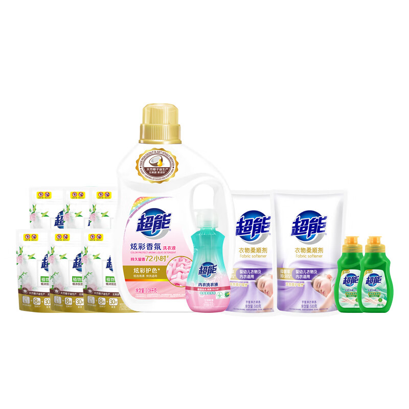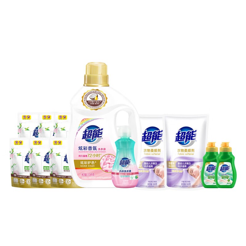 超能 ZS0465 洗衣液/洗衣粉 超能清洁组合6件 860g+222g+2.88kg两瓶+1kg+500g(特渠) 超能炫彩香氛清洁套装