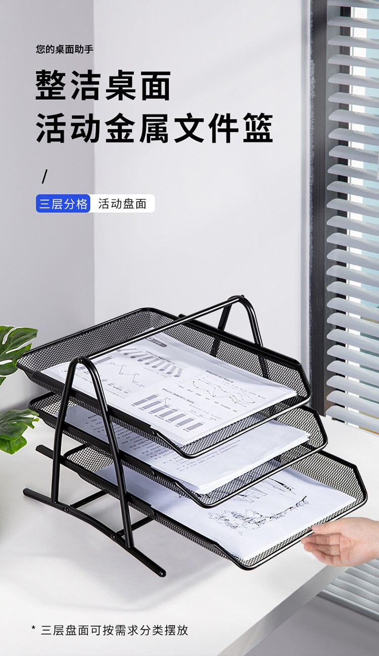 得力/deli 9181 文件筐 商务三层金属文件盘