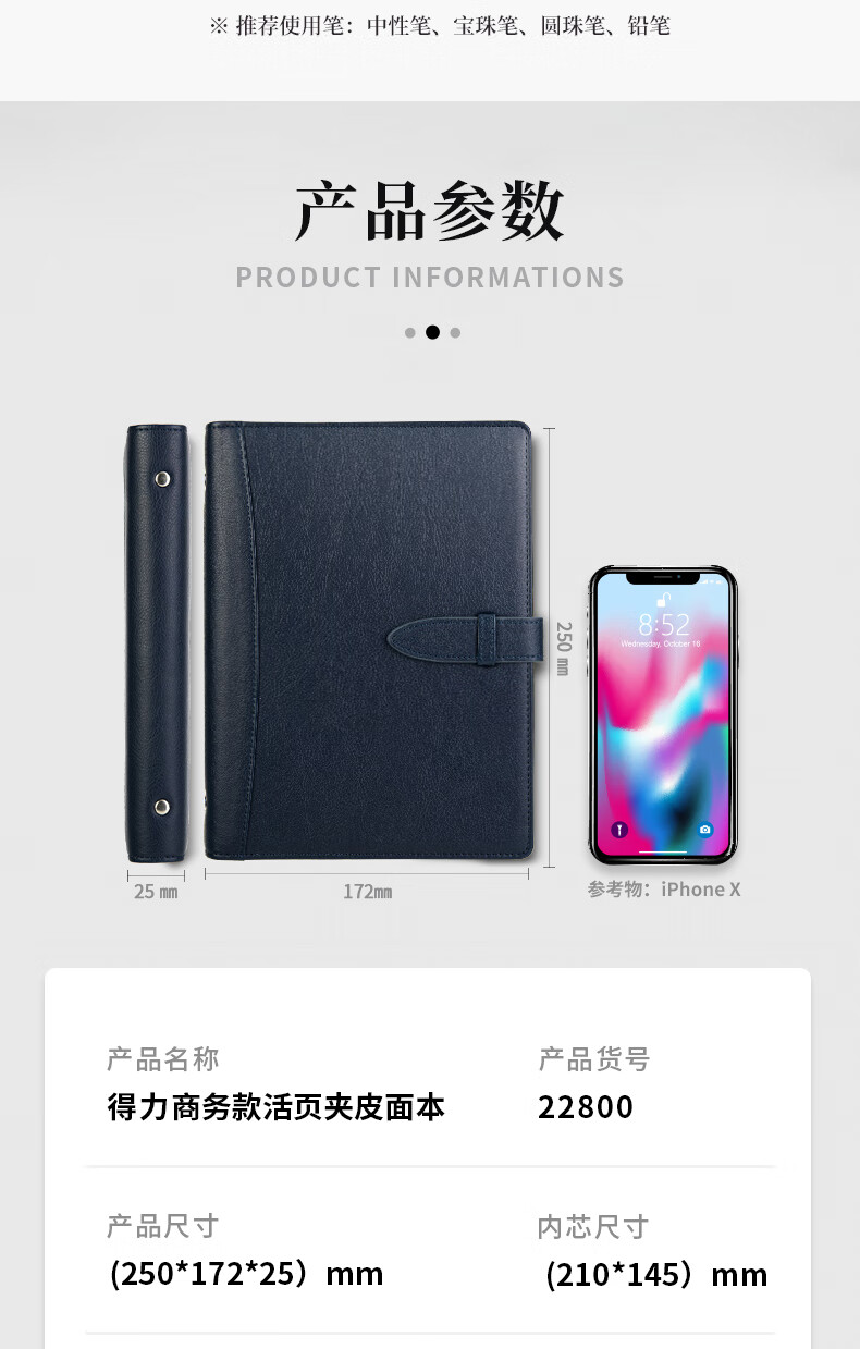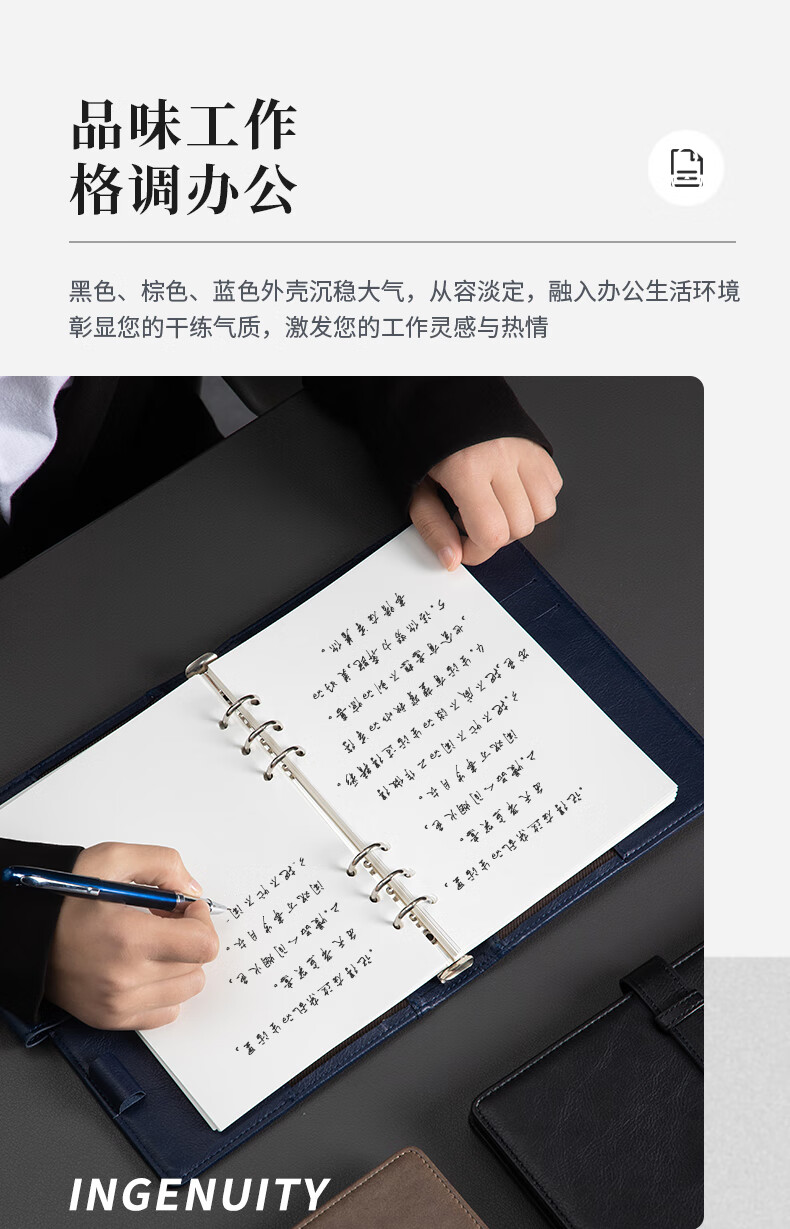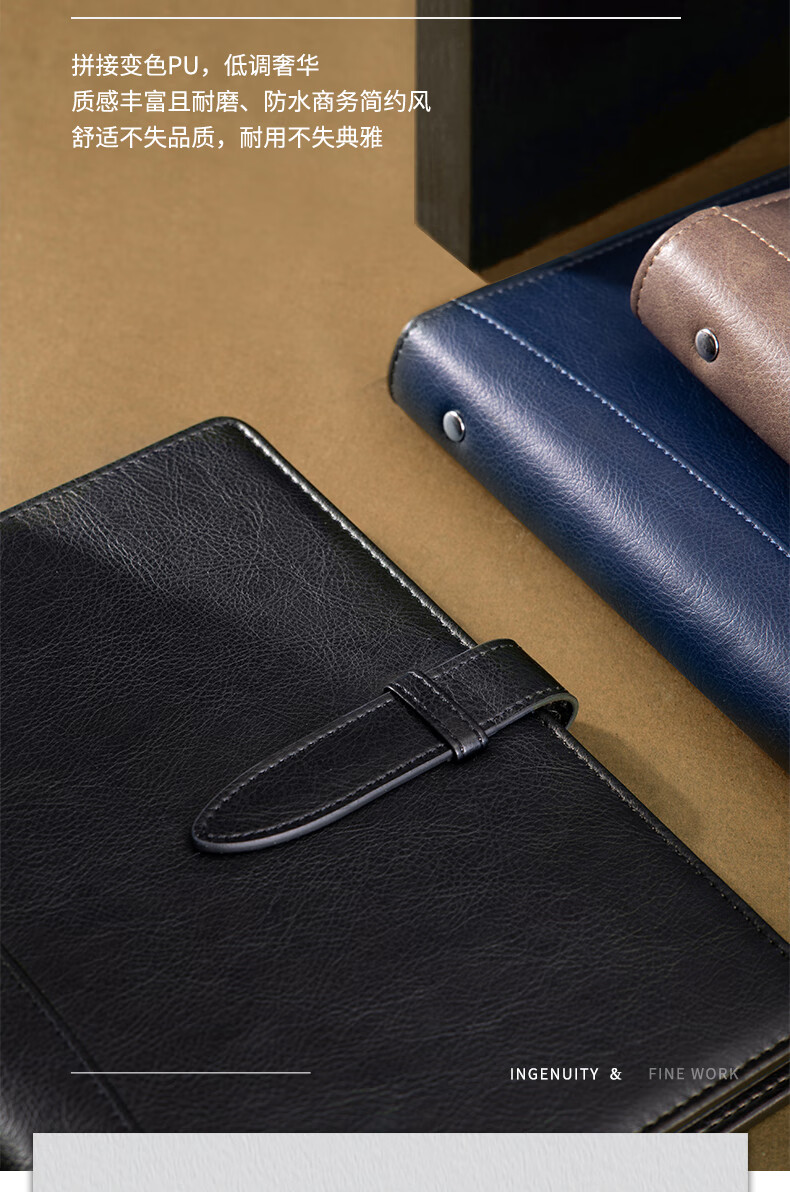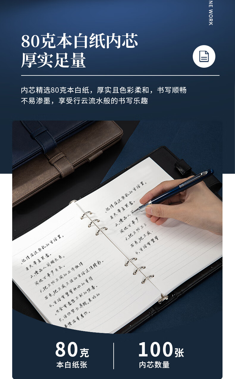 得力/deli 22800 薄本册 25K笔记本可换替芯皮面本100张办公商务本会议记事本活页本210mm*145mm黑色