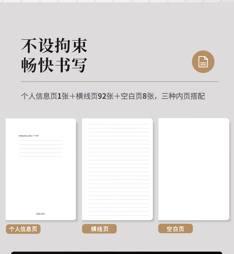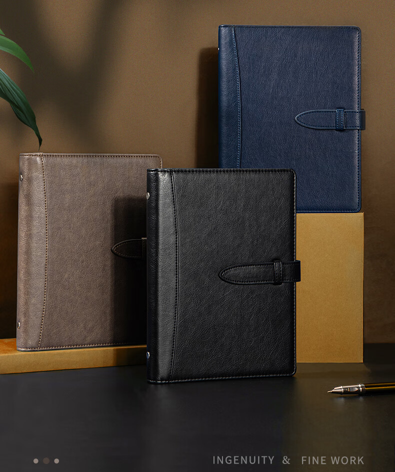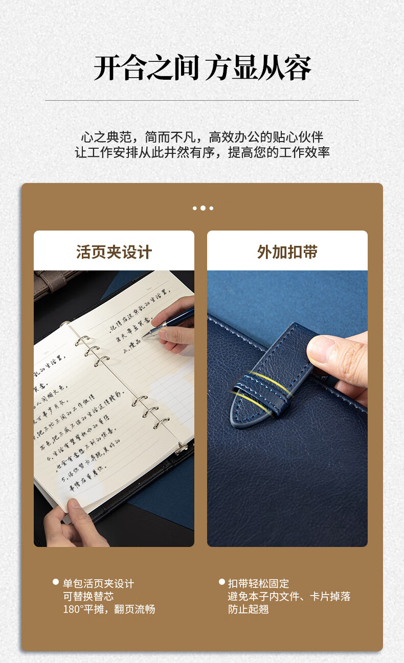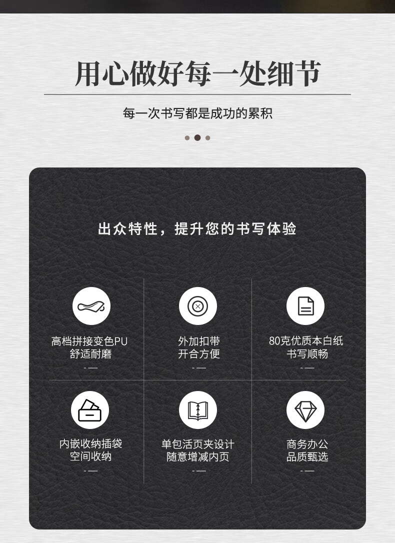 得力/deli 22800 薄本册 25K笔记本可换替芯皮面本100张办公商务本会议记事本活页本210mm*145mm黑色