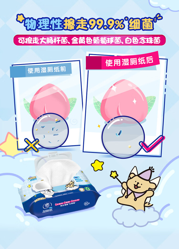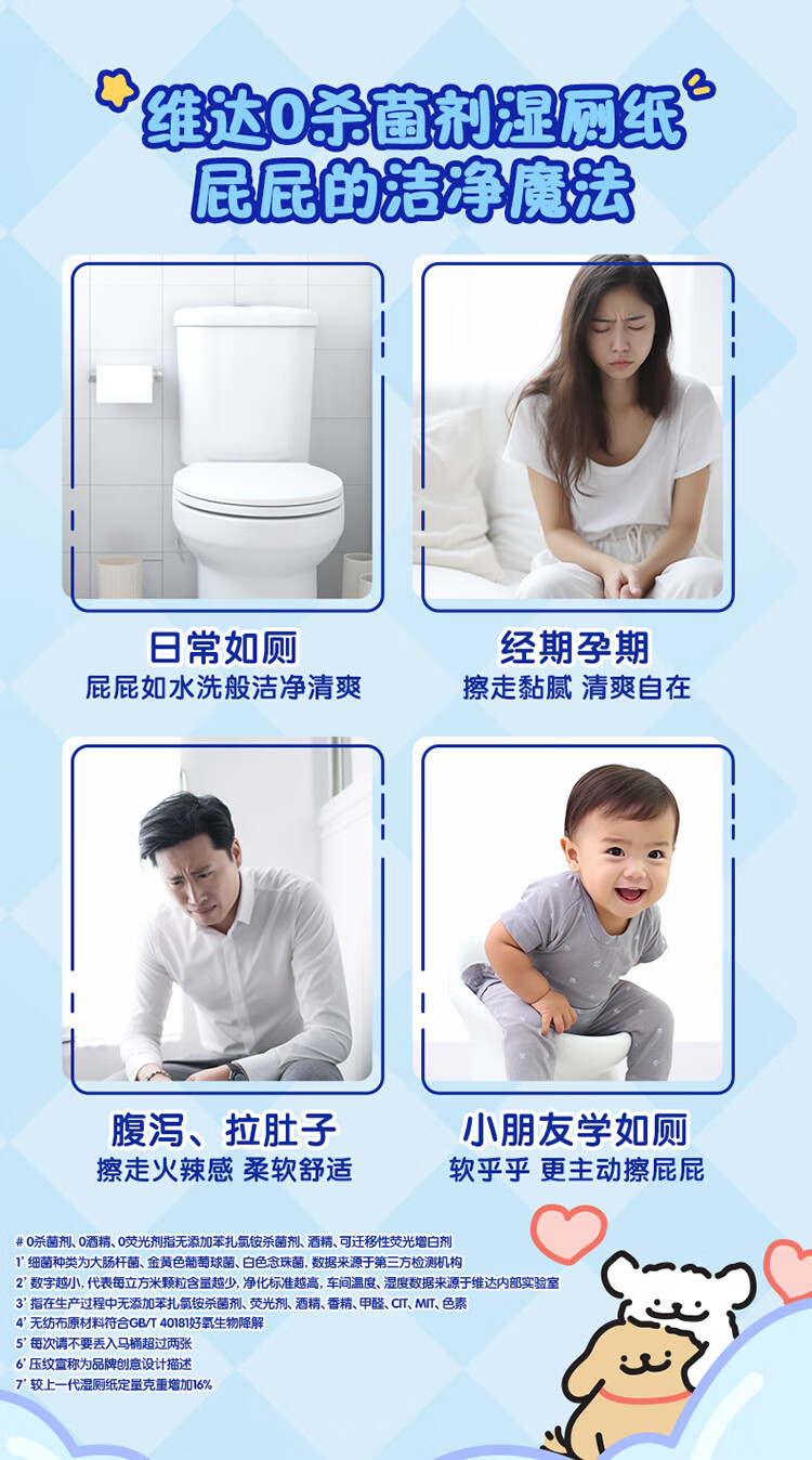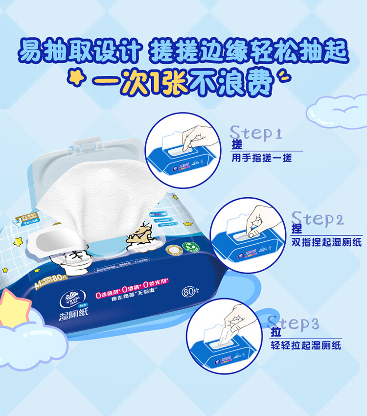 维达/Vinda V3425 软包抽取式面纸 维达湿厕纸80片/包*6