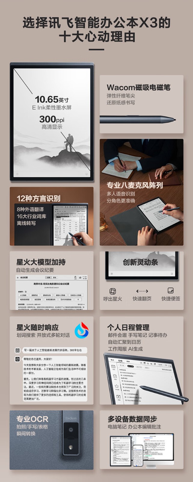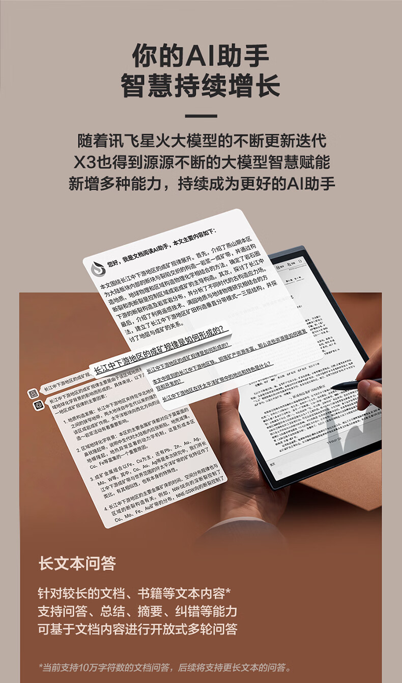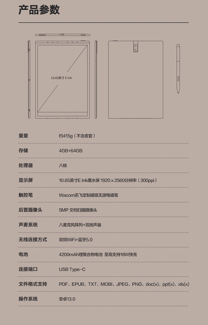 科大讯飞/iFLYTEK X3平板式微型计算机 4+64G 10.65英寸 电子书阅读器 墨水屏电纸书 平板电脑 手写笔记本电纸书