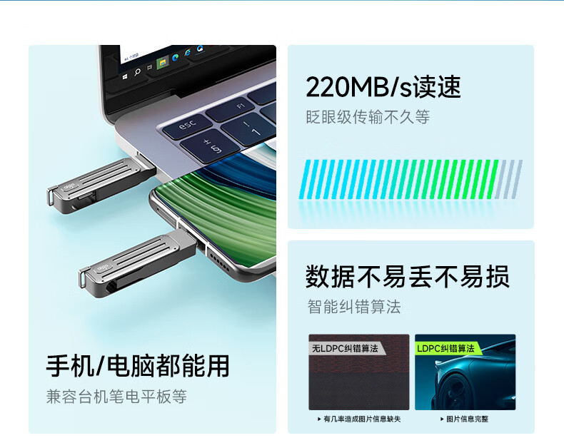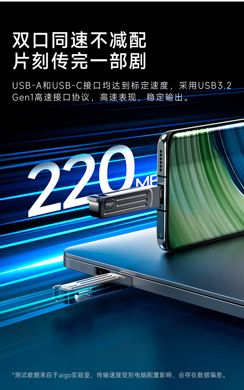 爱国者/Aigo W381 U盘/存储卡 128GB Type-C USB3.2高速U盘