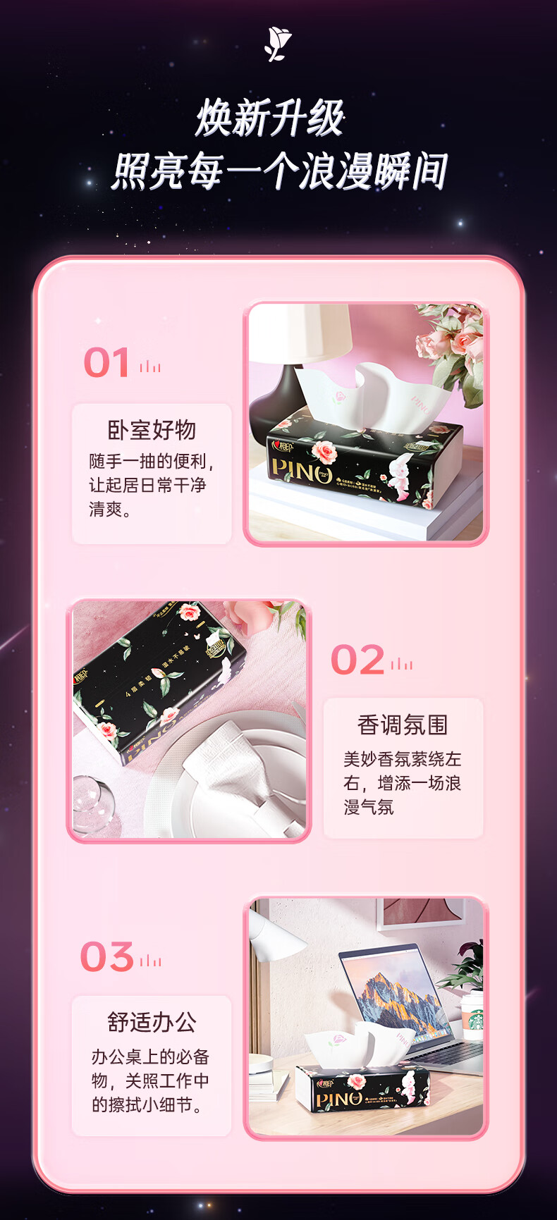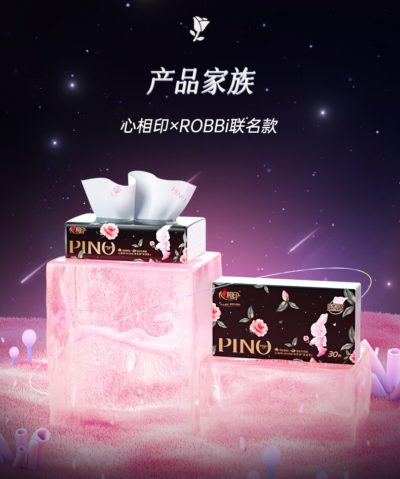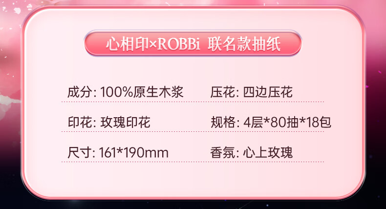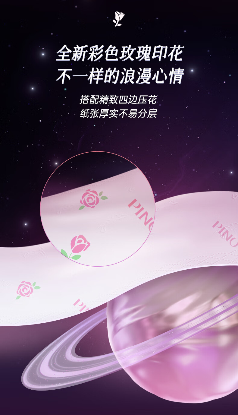 心相印/MindActUponMind PDTY7080 软包抽取式面纸 心相印品诺IP款四层80抽18包印花塑装面巾纸(玫瑰)加大M码