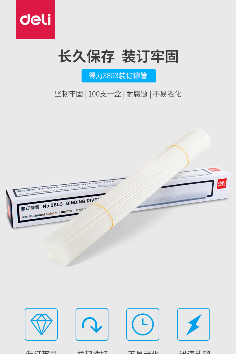 得力/deli 3853 塑料制品 专用铆管500mm 100支/盒 (适用于得力3880 14601 33686)