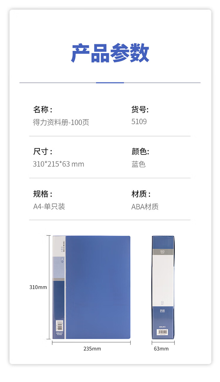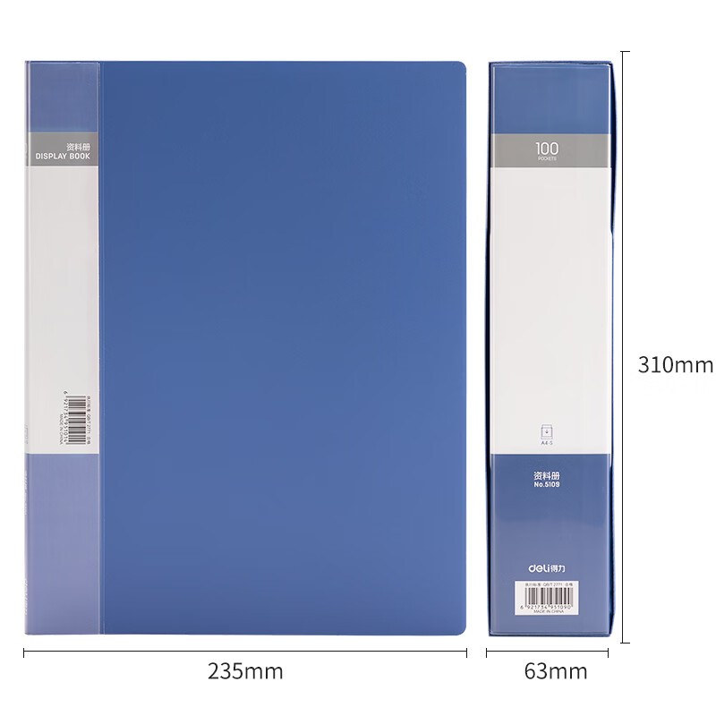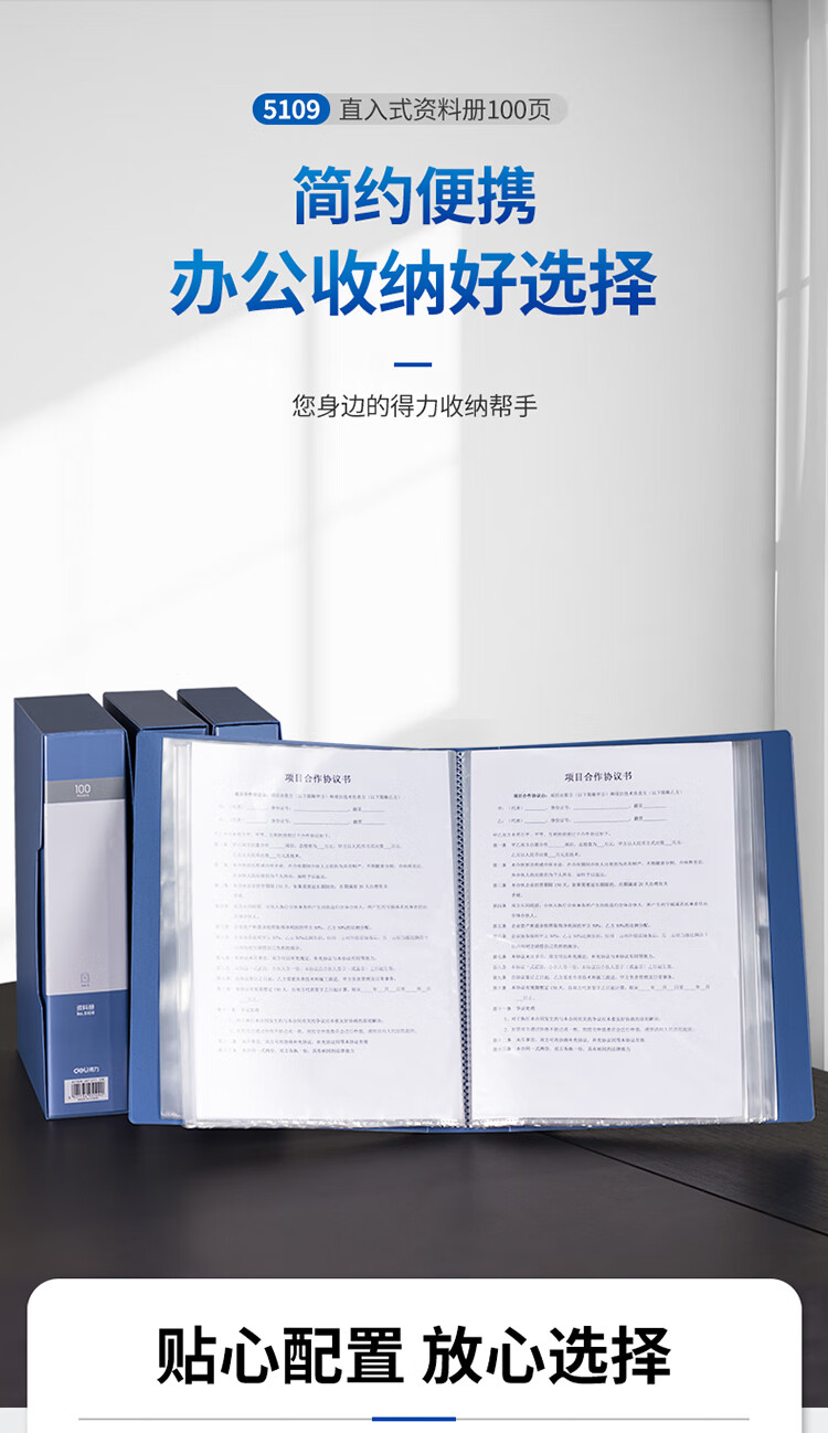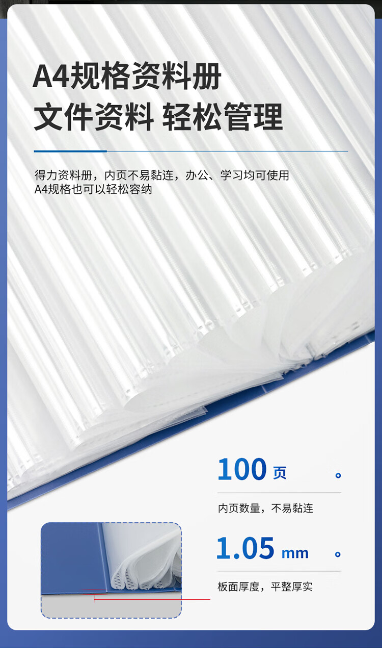 得力/deli 5109 文件夹 A4/100页大容量资料册文件活页收纳册