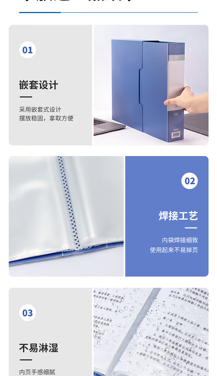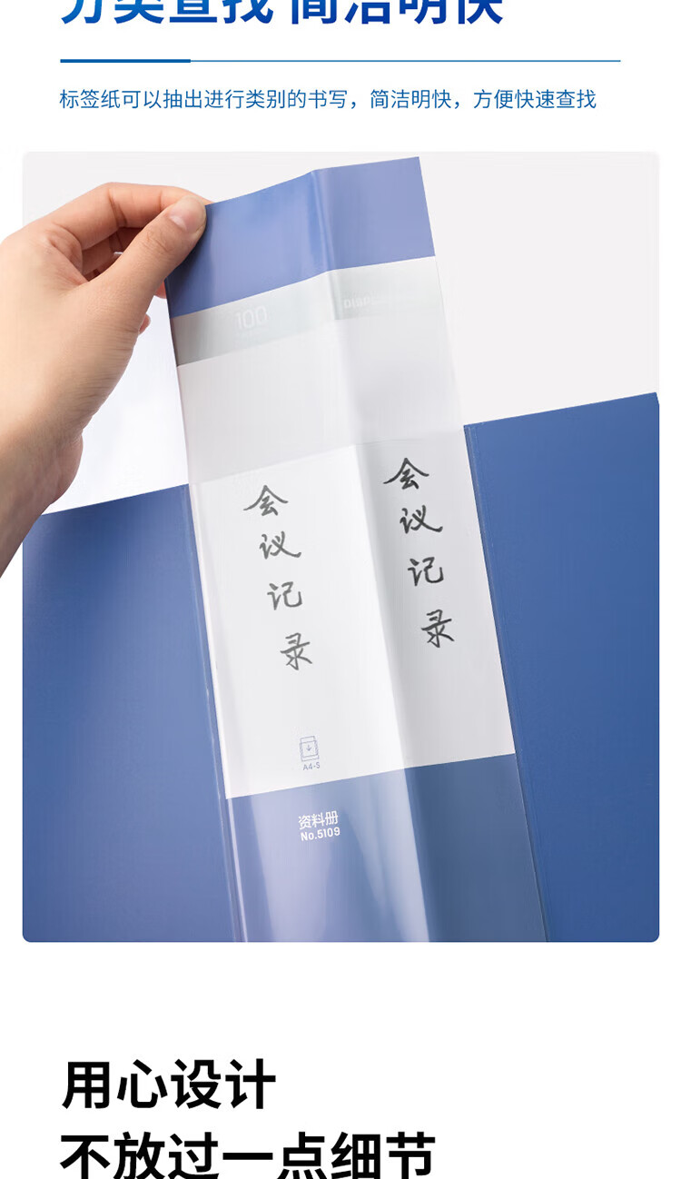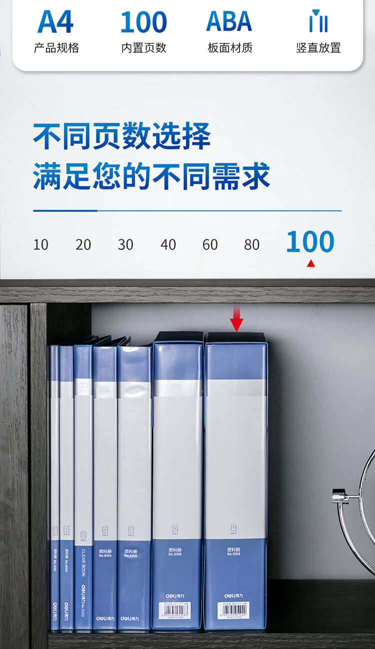 得力/deli 5109 文件夹 A4/100页大容量资料册文件活页收纳册
