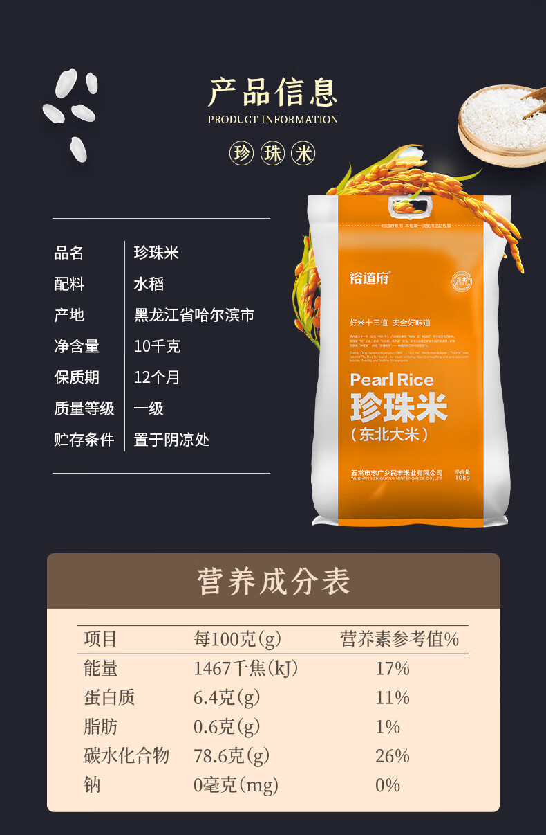 裕道府/YUDAOFU 4032 大米 东北大米批发粳米编织袋 珍珠米 10kg*1袋