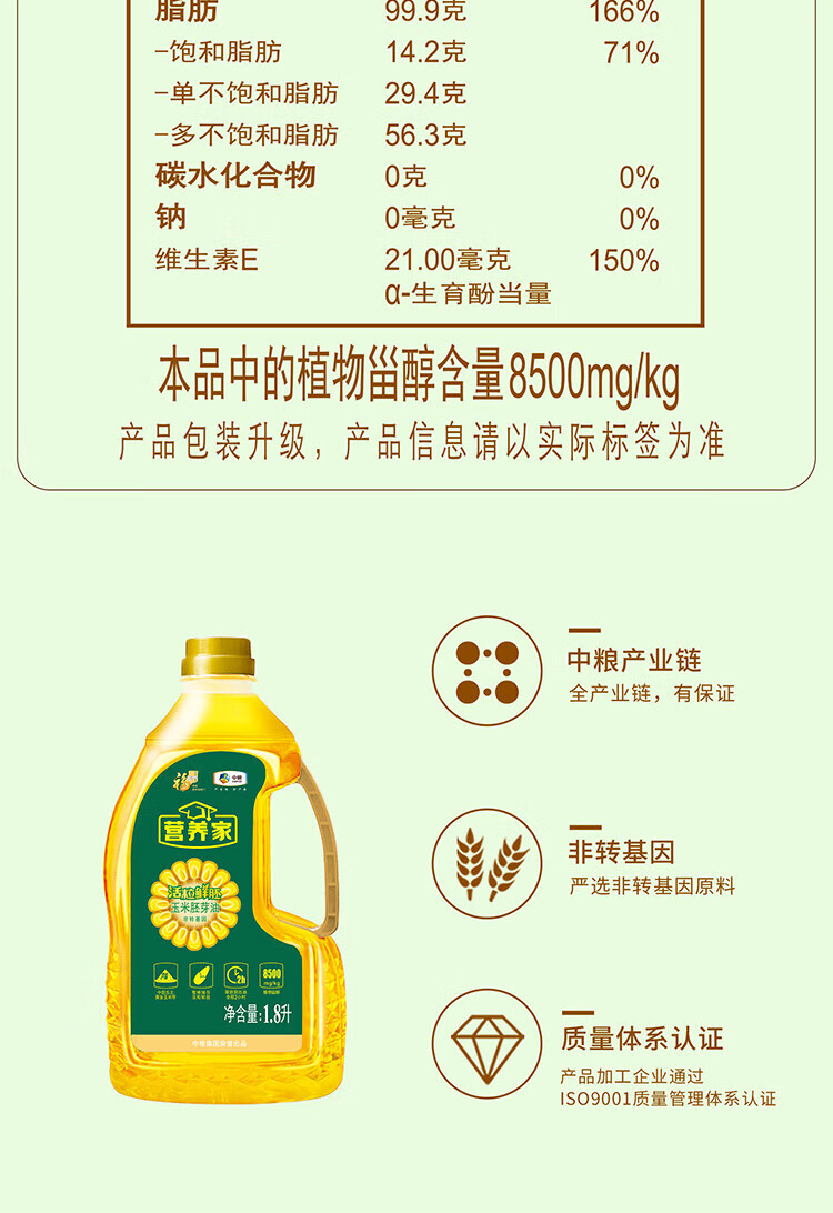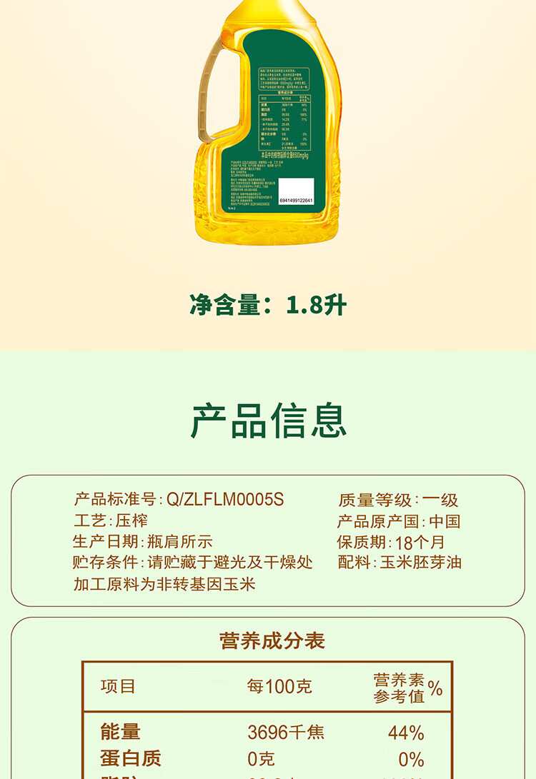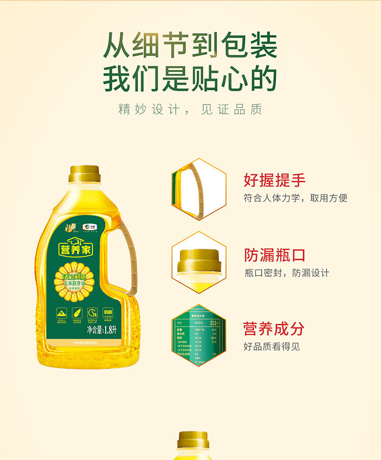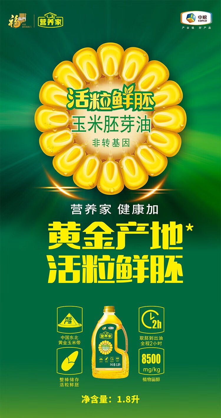 福临门 YYYM1.8 玉米油 中粮福临门营养家活粒鲜胚玉米胚芽油1.8L