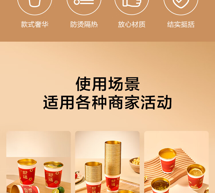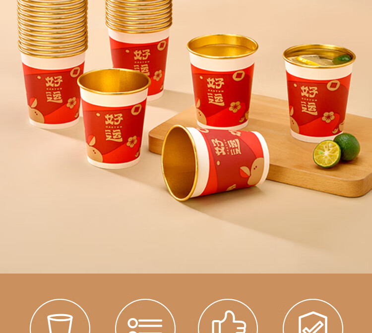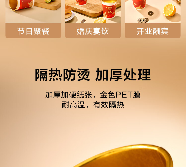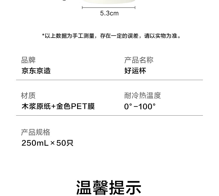 京东京造 250ml*50一次性杯子 金箔水杯250ml 50只