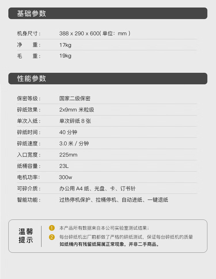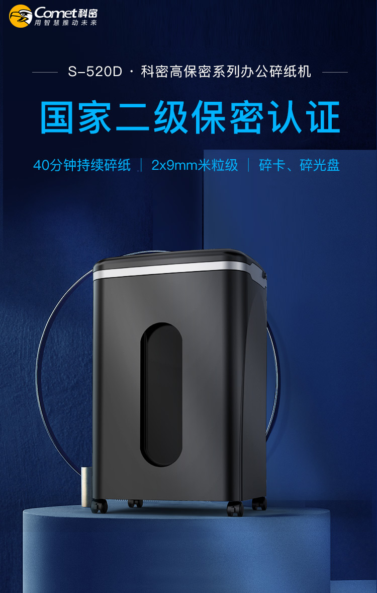 科密/Comet S-520D 碎纸机 国家保密认证二级 碎纸卡光盘40分钟连续碎保密商用碎纸机大视窗(2*9毫米 8张/次 23L)