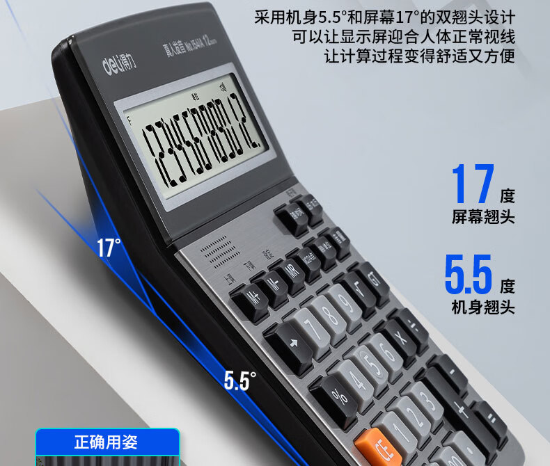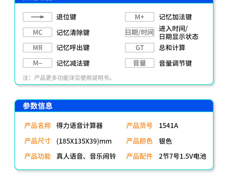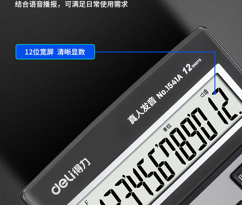 得力/deli 1541A 电子计算器 2位大屏语音计算器 闹钟日历功能语音计算机 办公用品 1541A银色