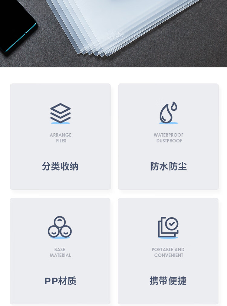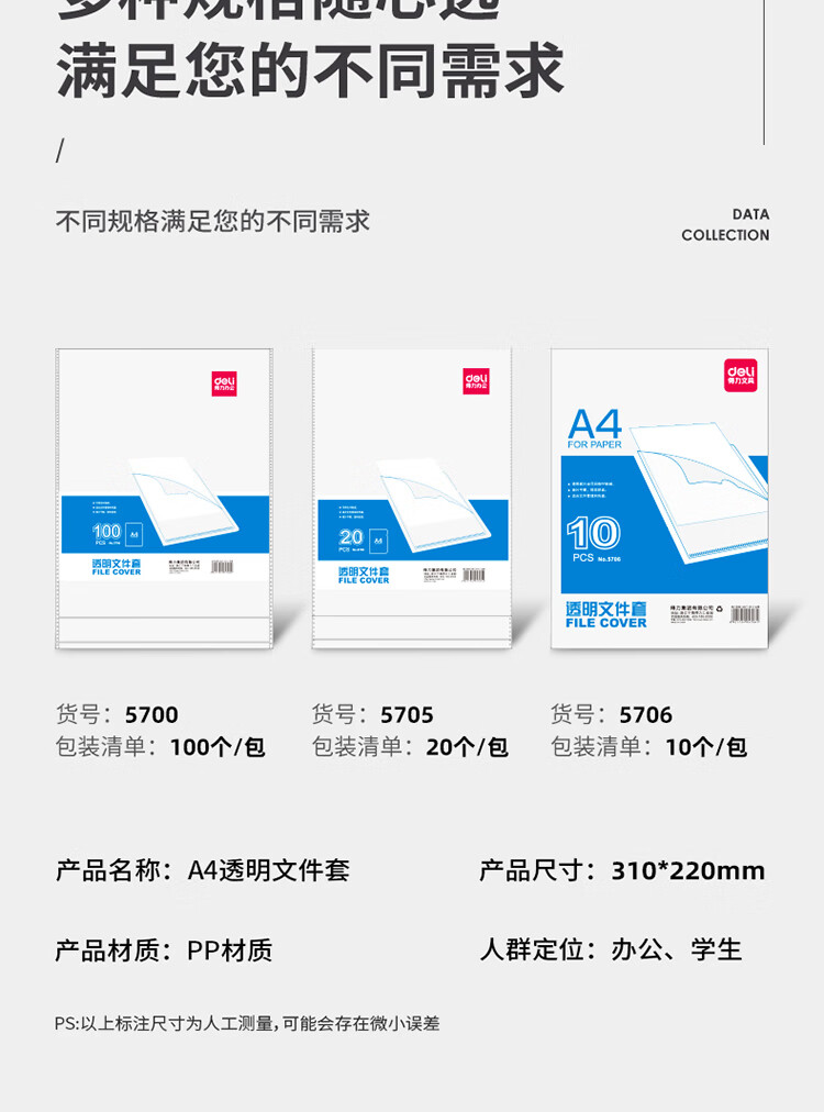 得力/deli P05700 文件袋 100只A4L型文件套 文件夹透明单片夹 票据收纳