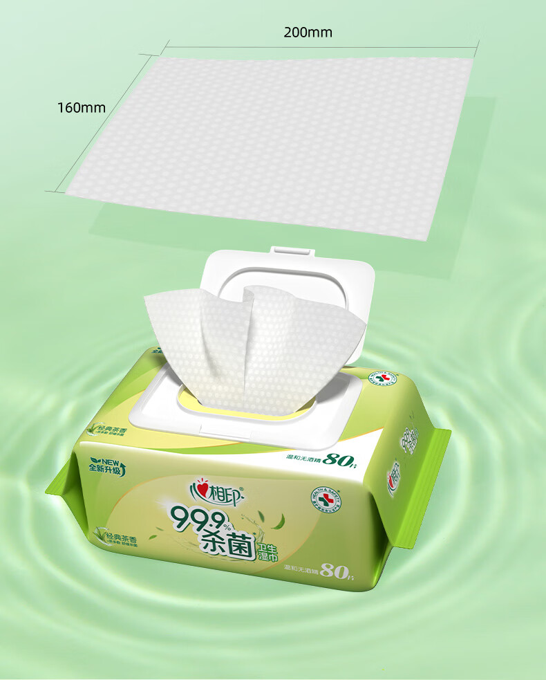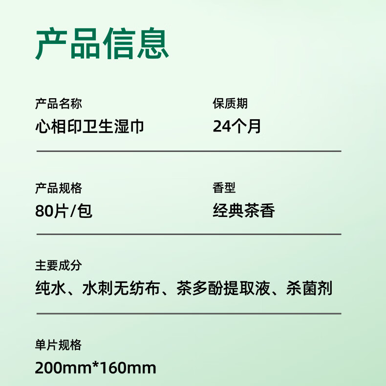 心相印/MindActUponMind XCG080 软包抽取式面纸 心相印卫生系列80片装湿巾(经典茶香)