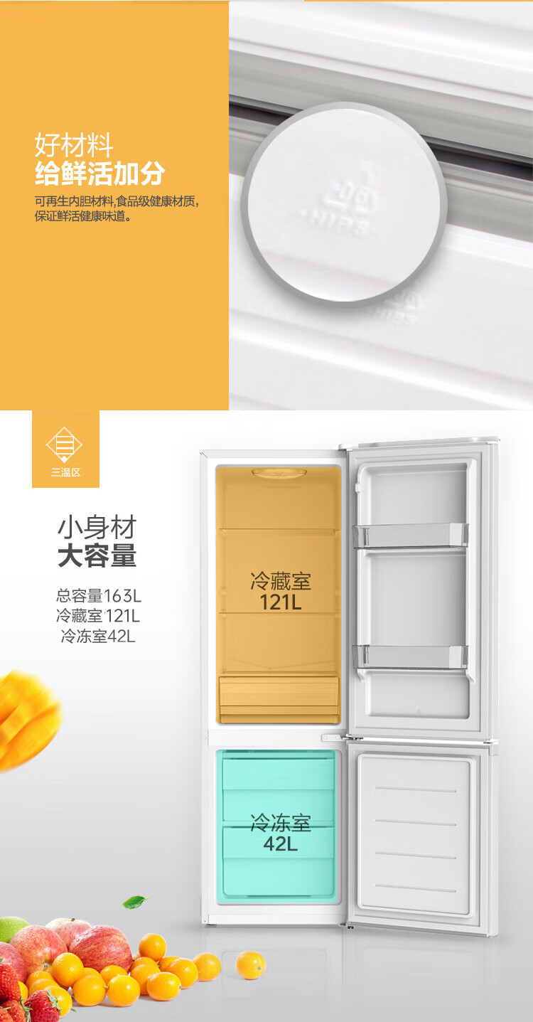 创维/Skyworth BCD-163D电冰箱 雅白 两门直冷冰箱 163L