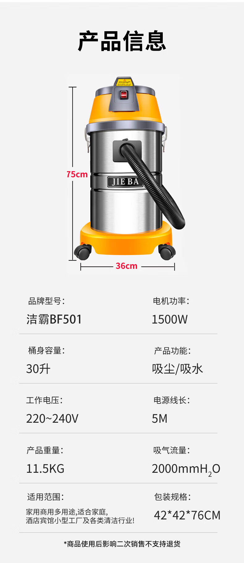 白云清洁/BAIYUNCLEANING BF501清洗机 洁霸30升吸尘吸水机