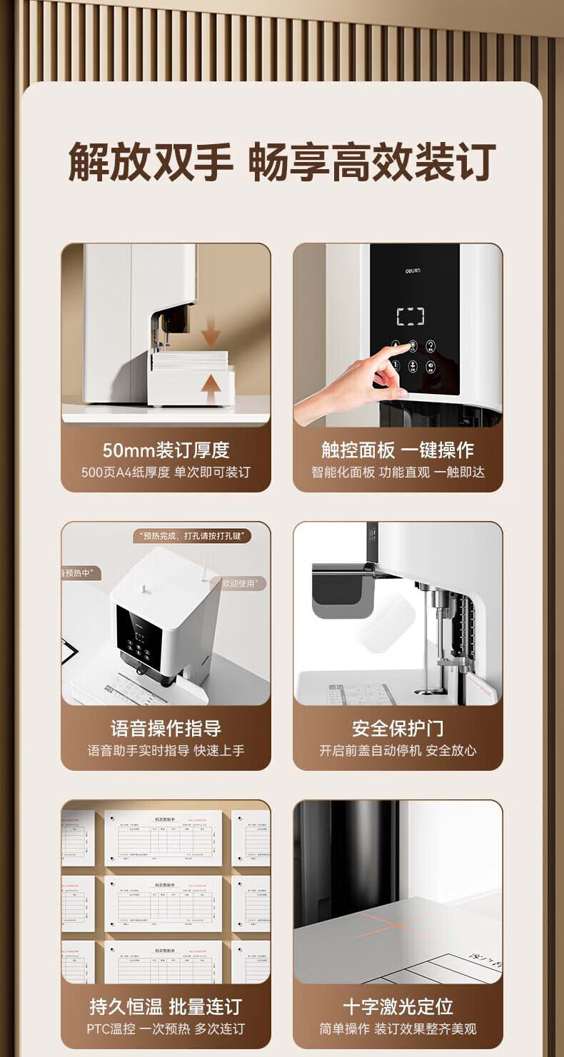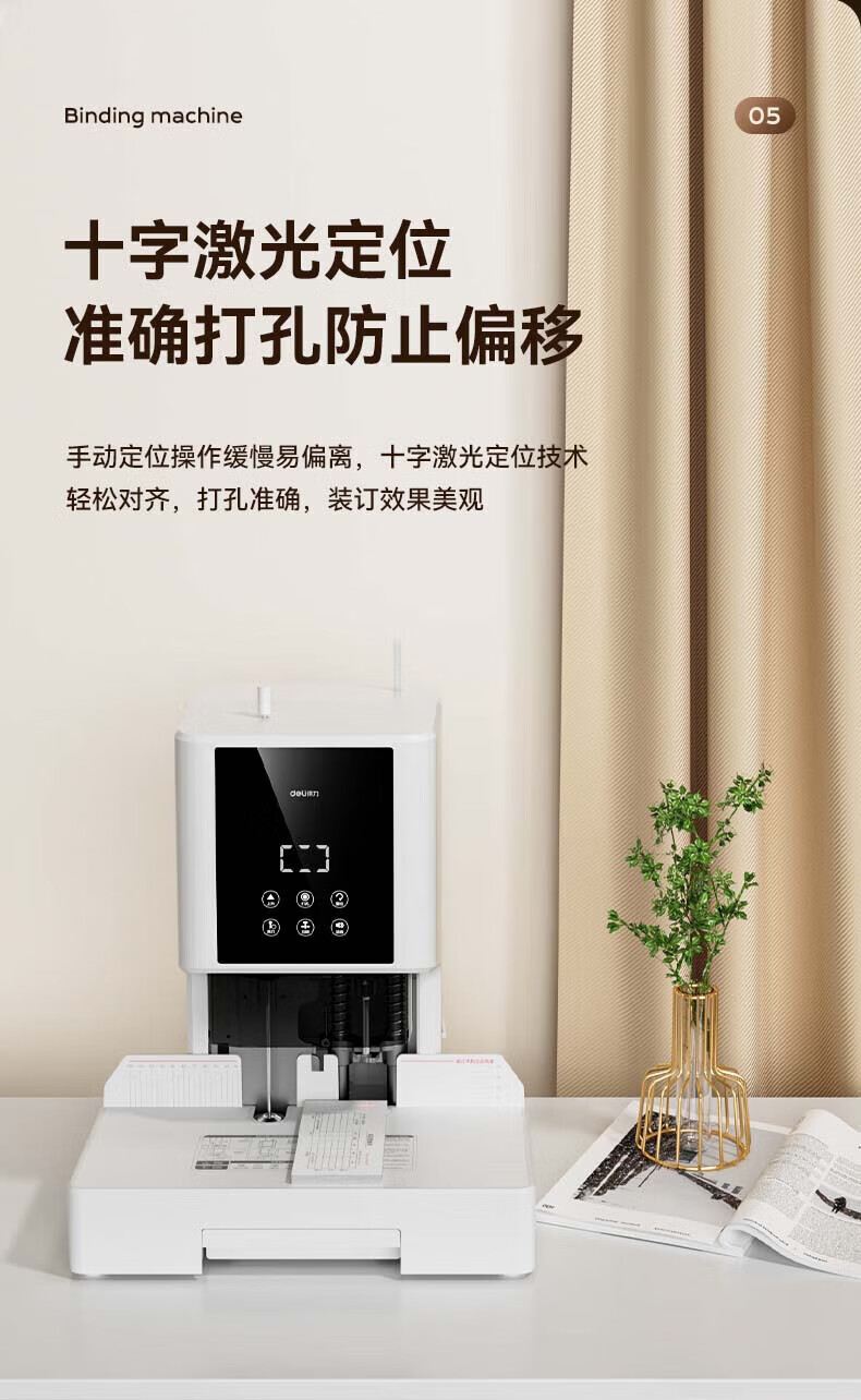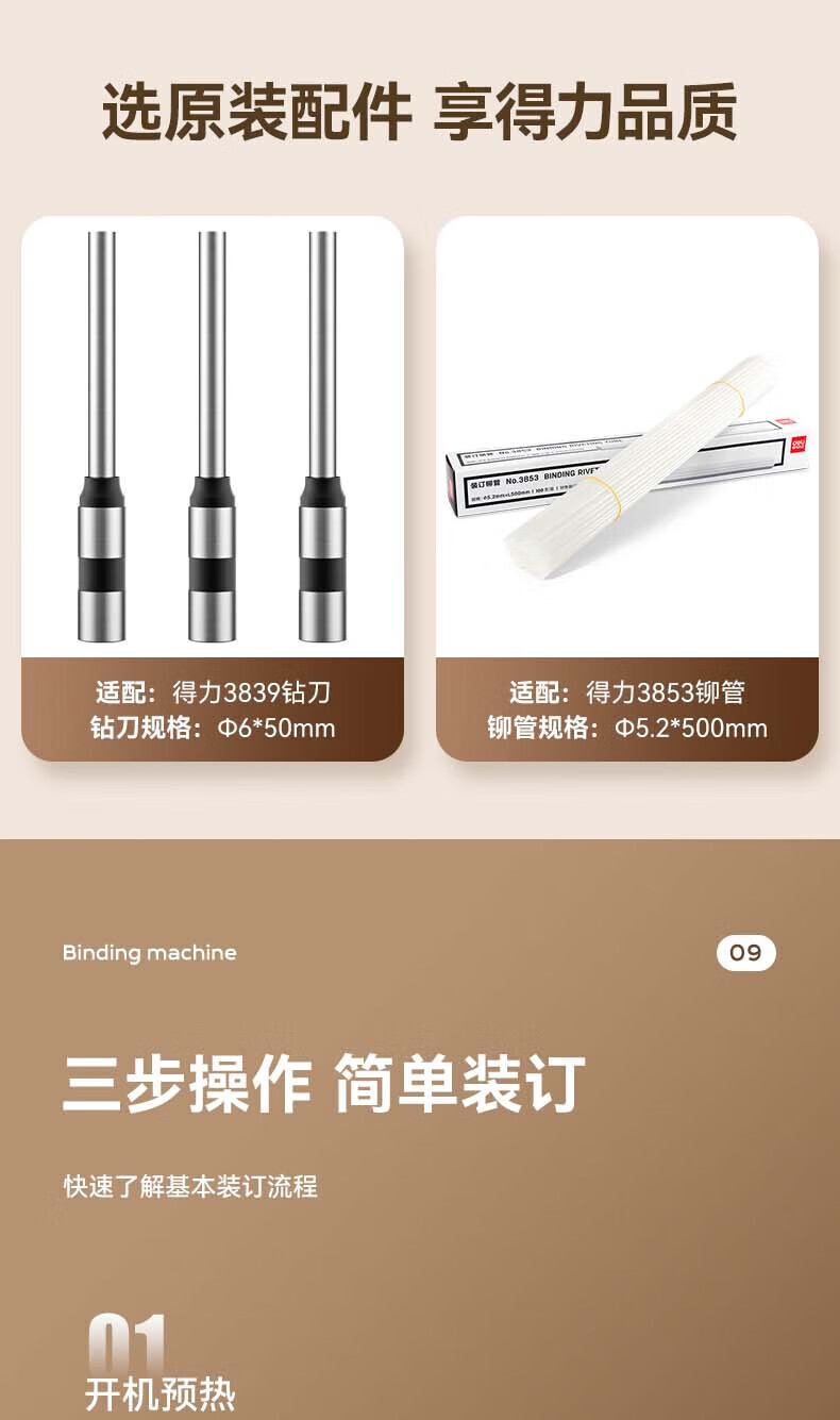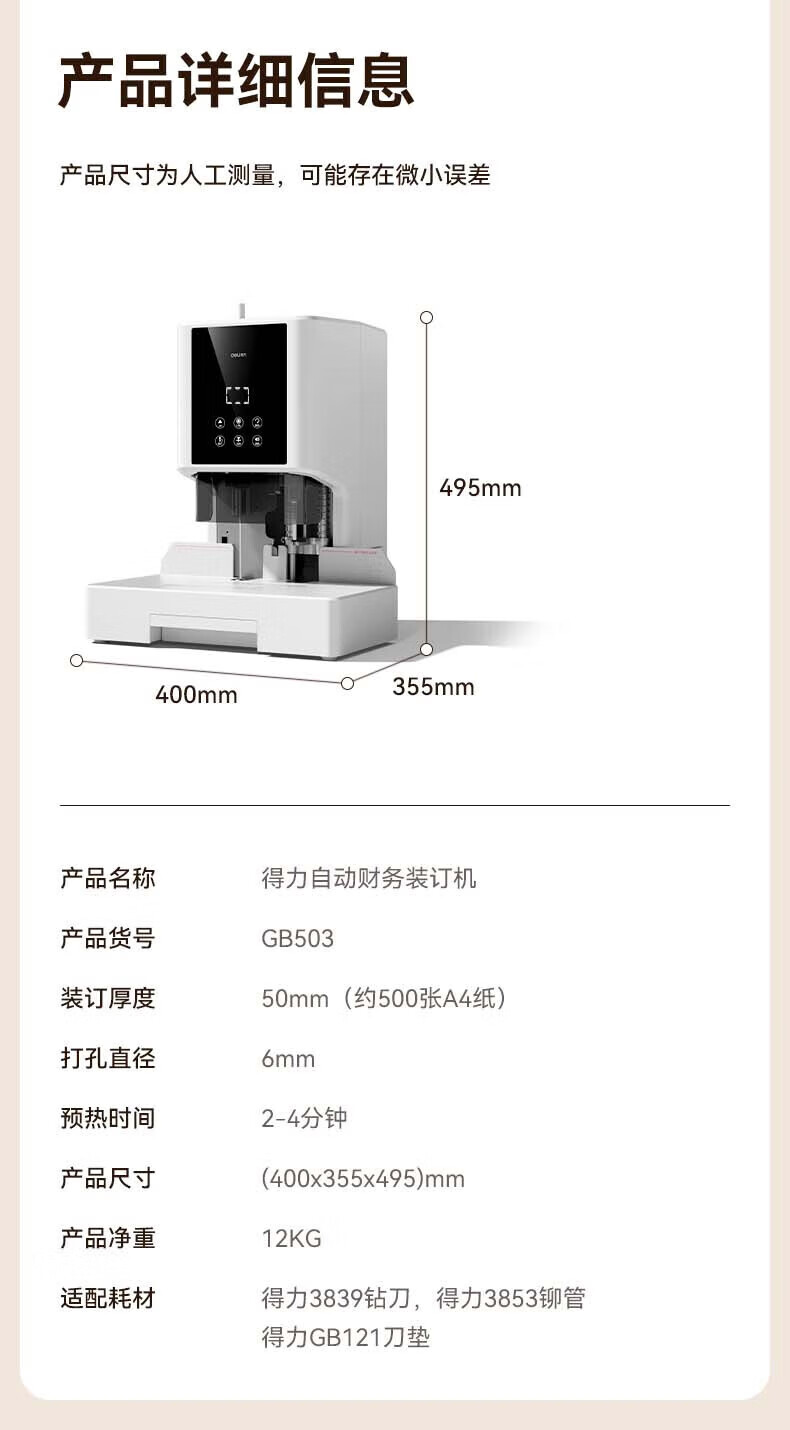 得力/deli GB503 装订机 50mm 自动装订 财务装订机 白色