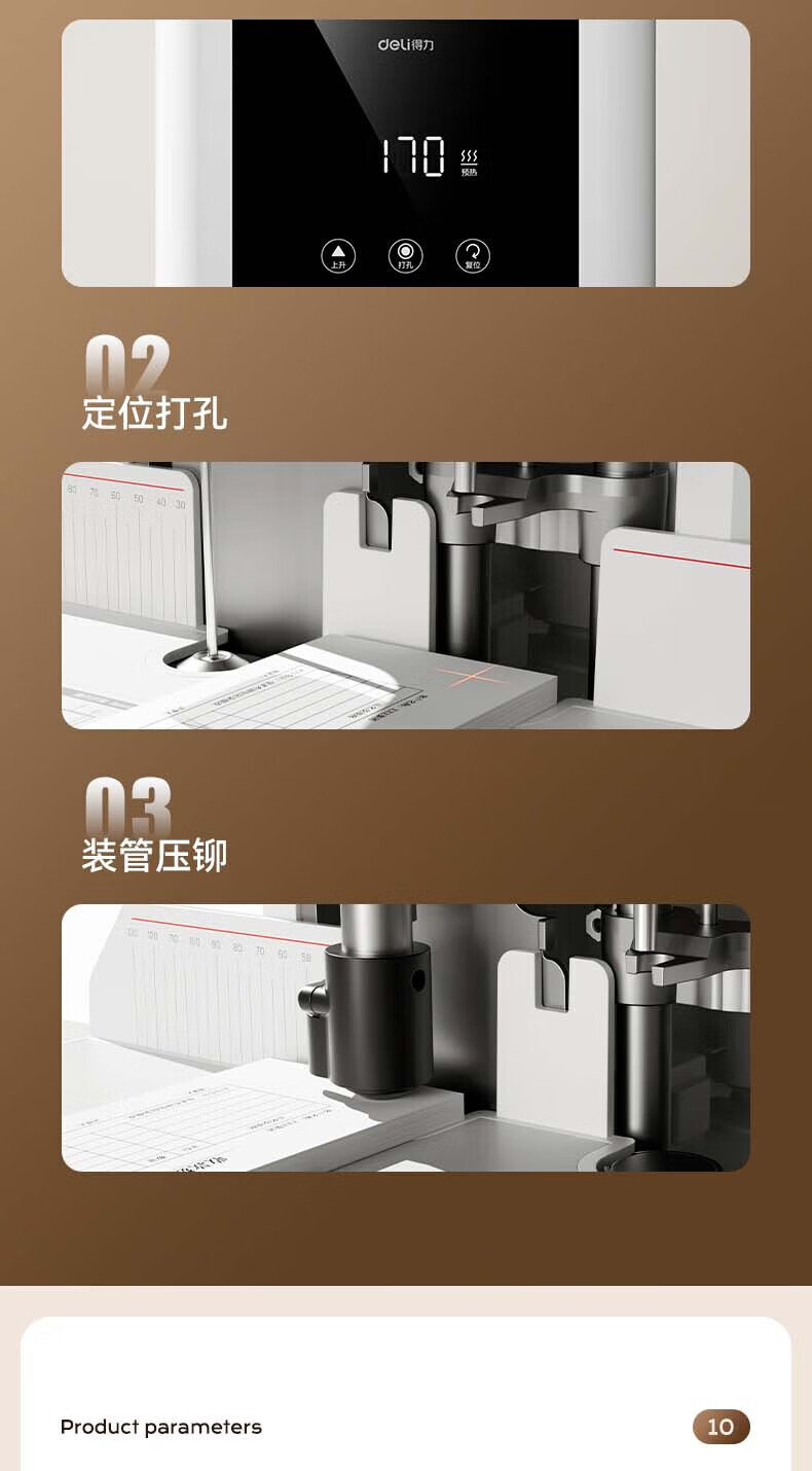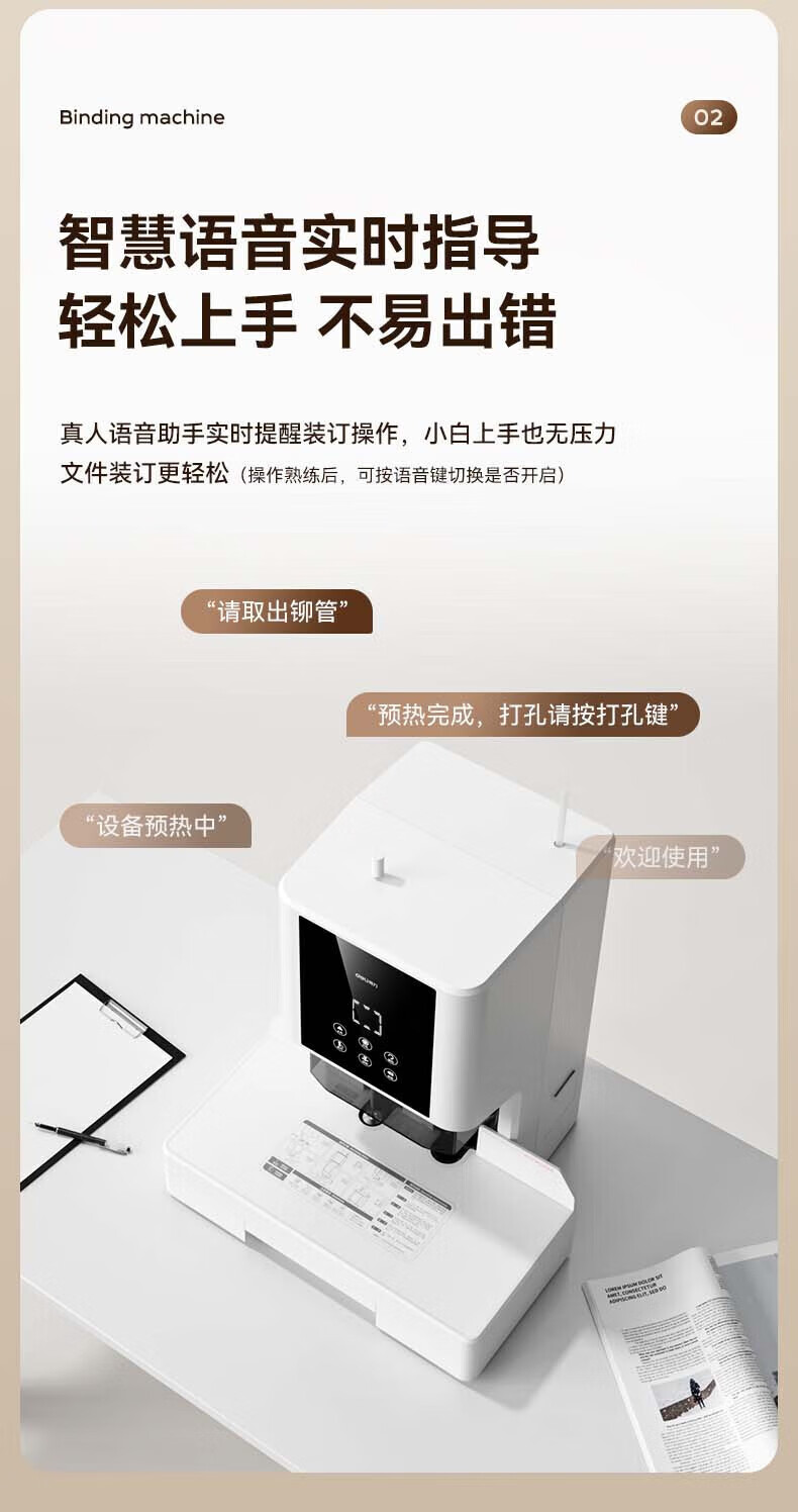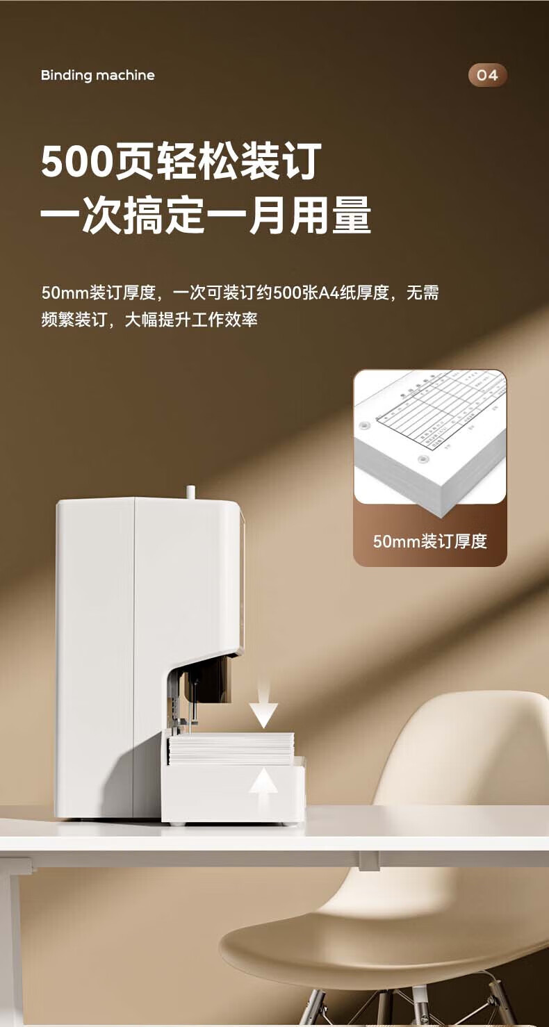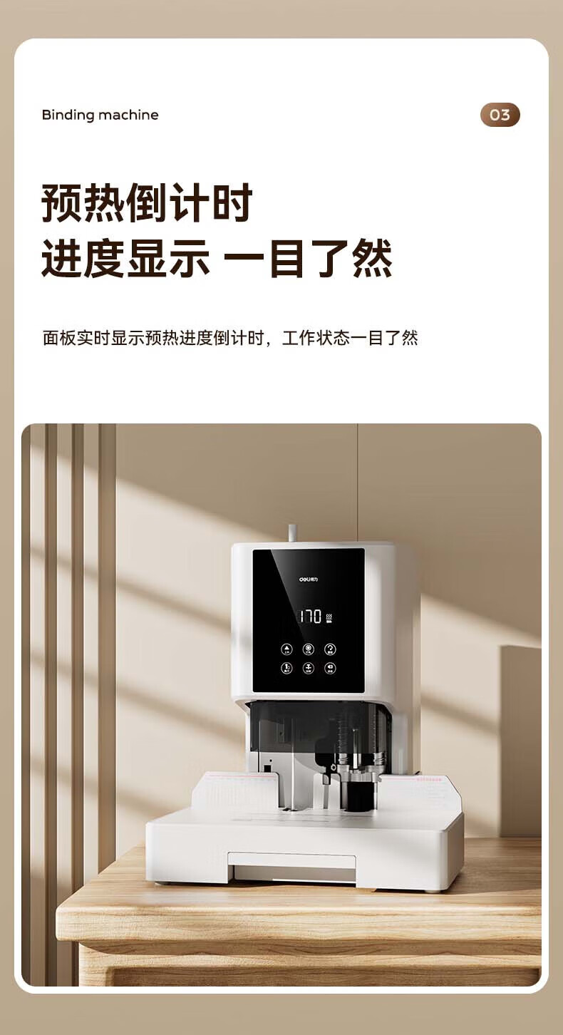 得力/deli GB503 装订机 50mm 自动装订 财务装订机 白色