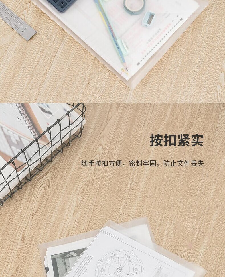 得力/deli 5501A 文件袋 文件袋A4 纽扣袋 文件袋 资料袋 文件套 办公用品 透明文件袋 10个装