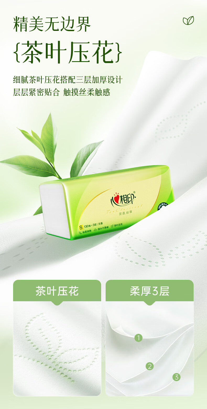 心相印/MindActUponMind DT15130 软包抽取式面纸 心相印茶语丝享系列130抽三层塑装纸面巾24包装