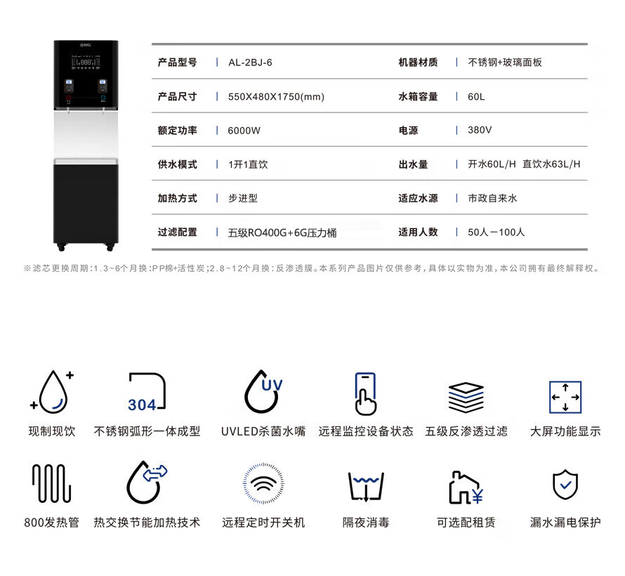 澳莱克林 AL-2BJ-6步进式电开水器及其配套净水装置 步进式开水器商用直饮水机饮水设备