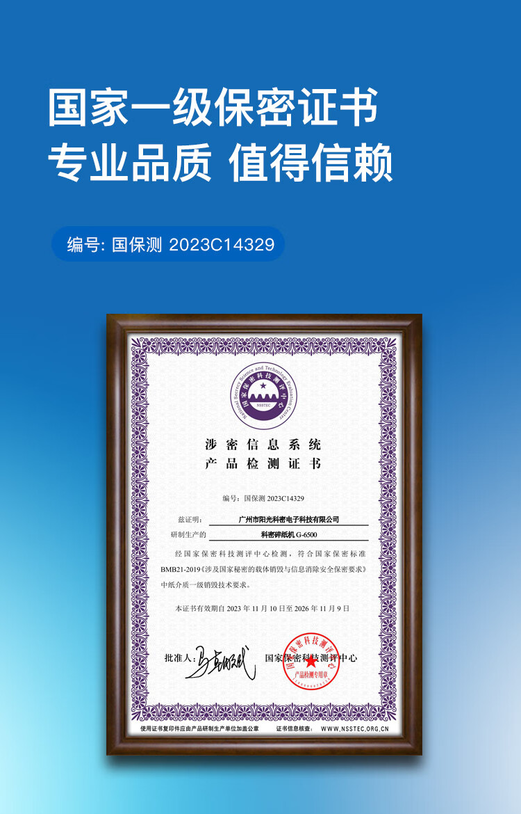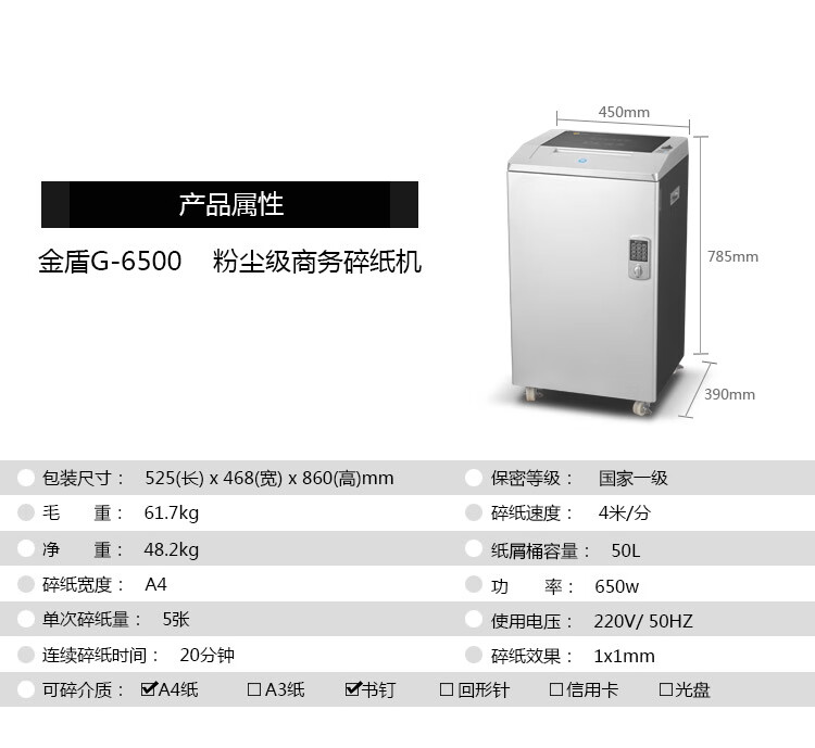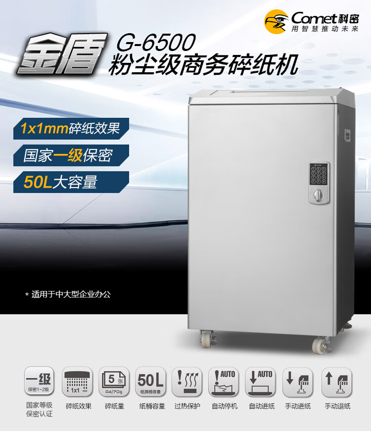科密/Comet G-6500 碎纸机 国家保密认证一级 1*1毫米 保密商用碎纸机 ( 5张/次 20分钟 43L)