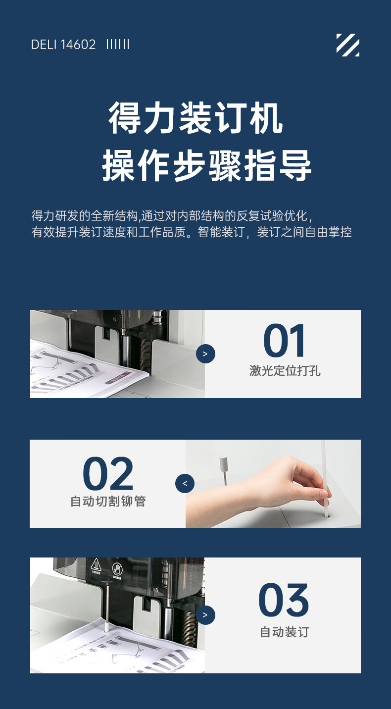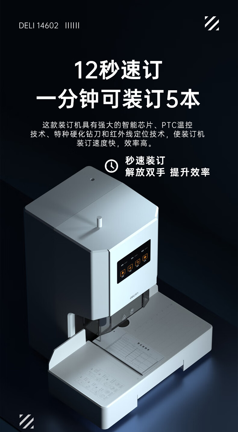 得力/deli 14602 装订机 自动财务凭证装订机500页装订厚度 会计凭证文件资料热熔胶管铆管打孔机