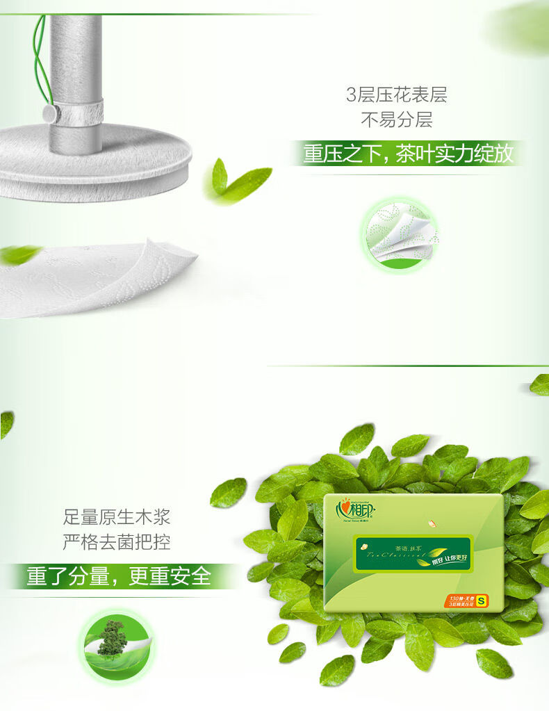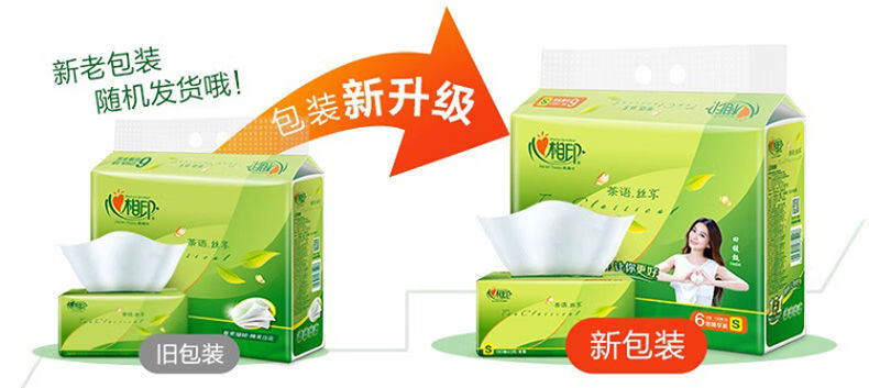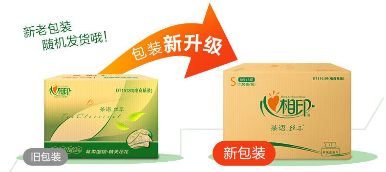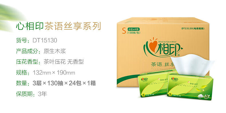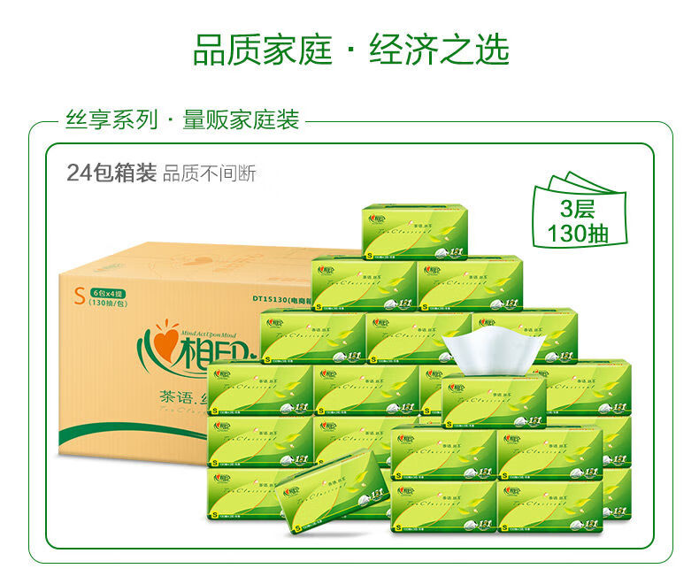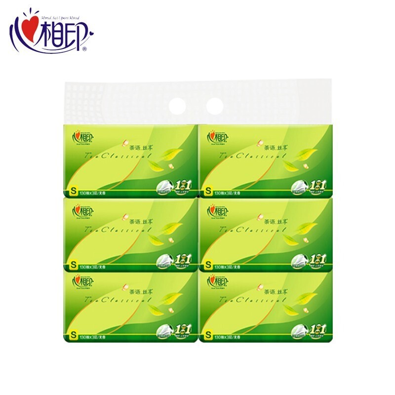心相印/MindActUponMind DT15130 软包抽取式面纸 茶语丝享系列130抽三层塑装纸面巾(新老包装随机发货)6包*3提