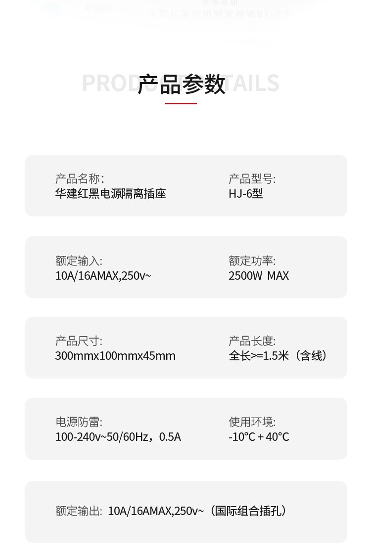 华建科技/HUAJIANTECH HJ-6 插座 红黑电源