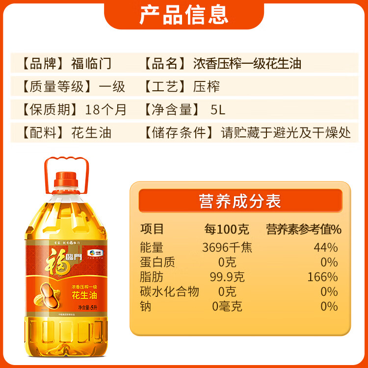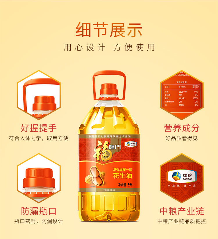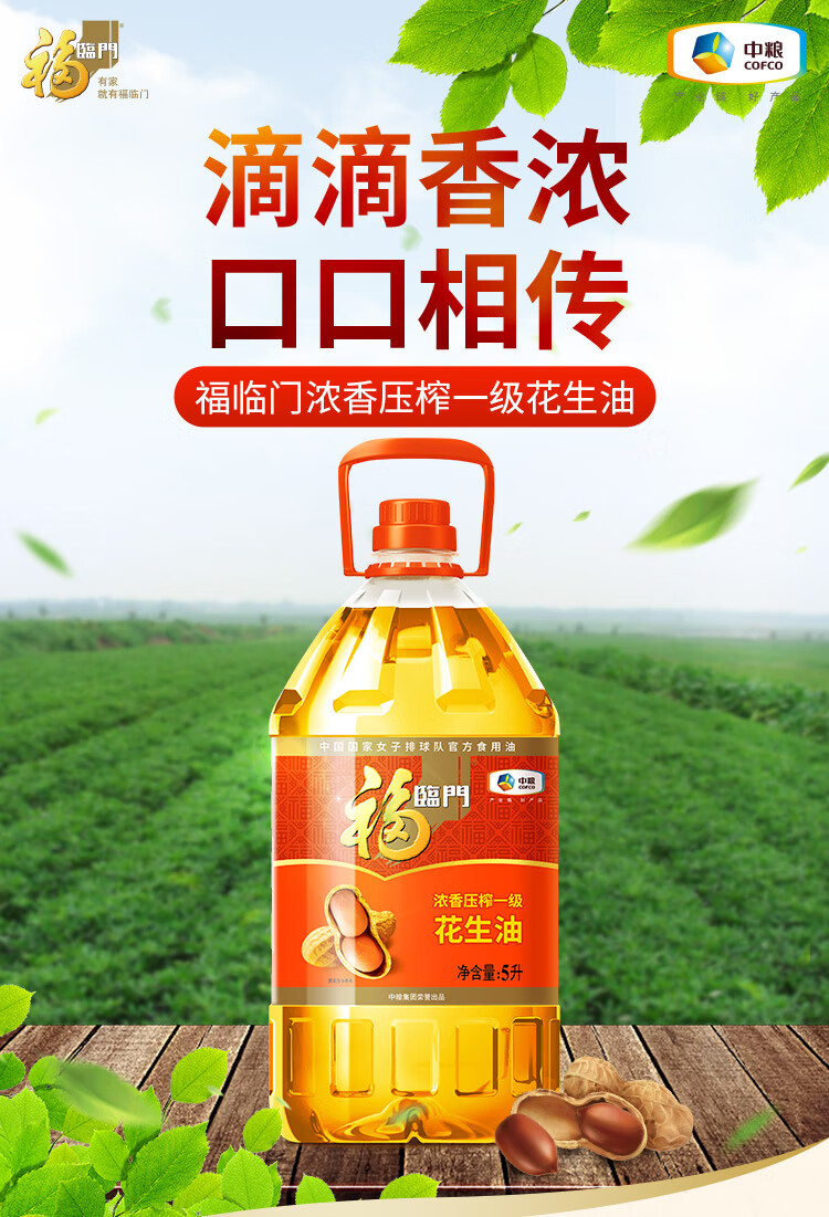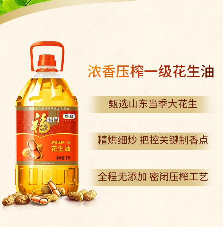 中粮 YZYJ5 花生油 浓香压榨一级 花生油5L 中粮出品 新老包装随机发货