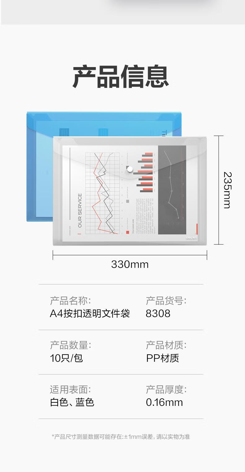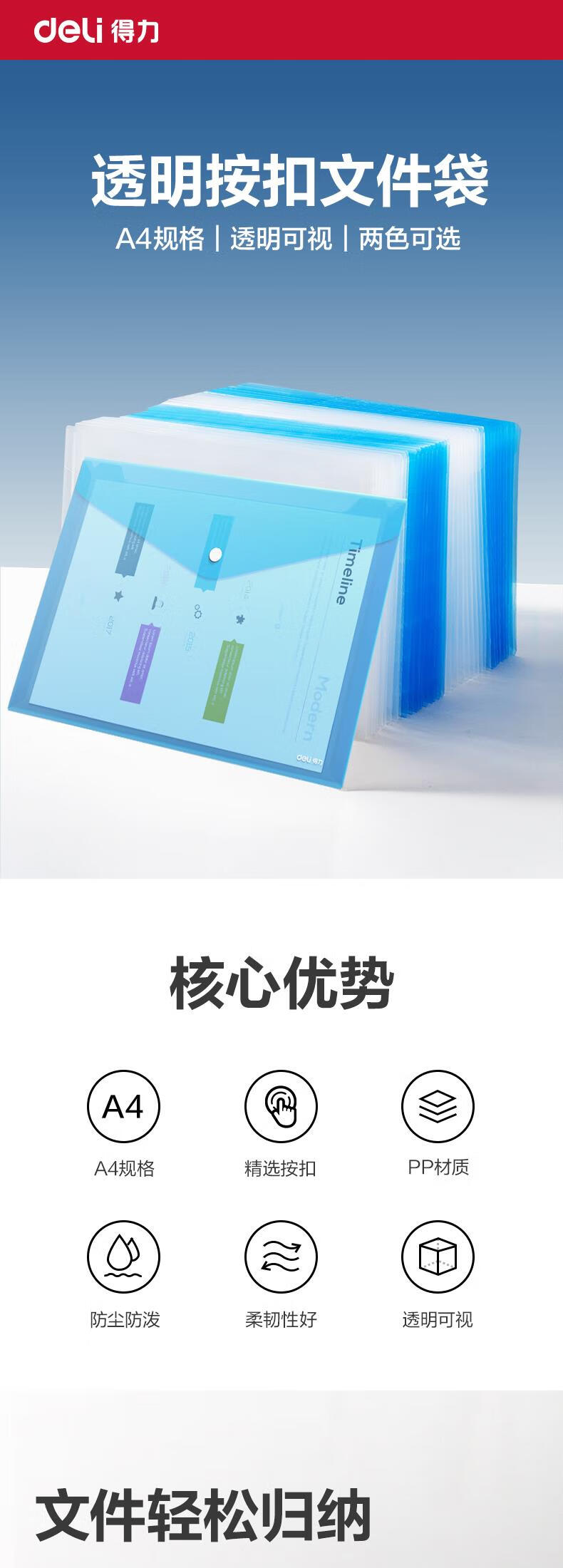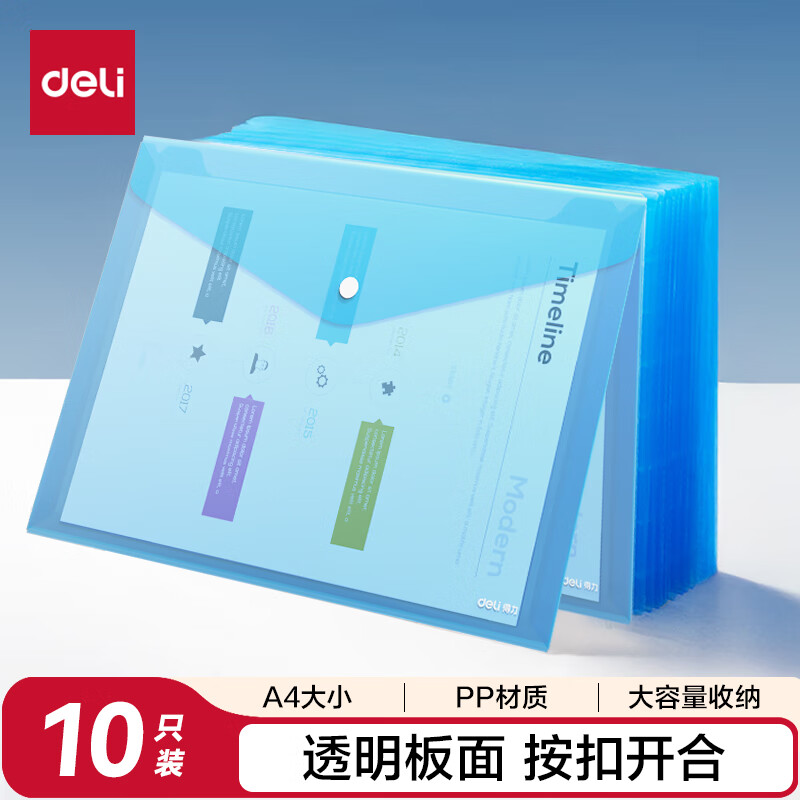 得力/deli 8308 文件袋 10只A4透明文件袋 按扣资料袋塑料档案袋