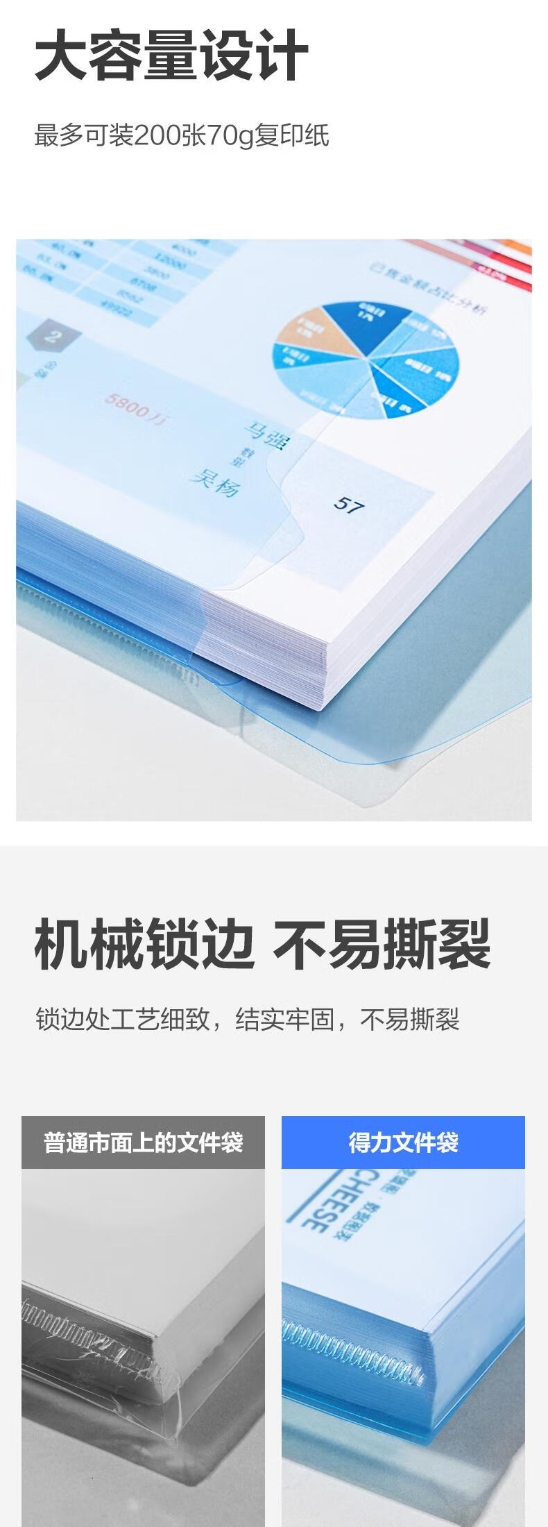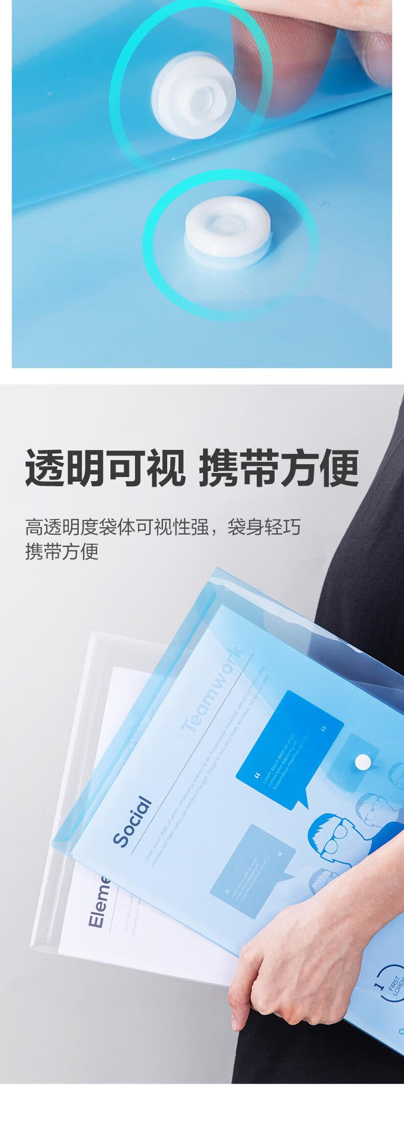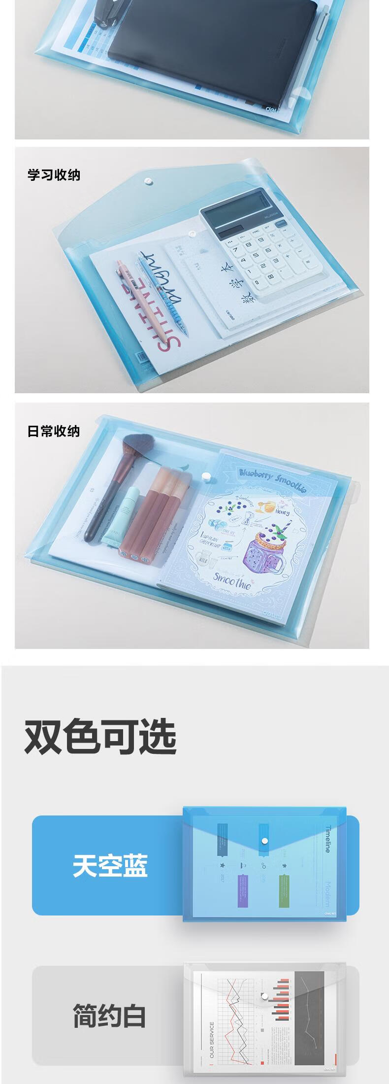 得力/deli 8308 文件袋 10只A4透明文件袋 按扣资料袋塑料档案袋