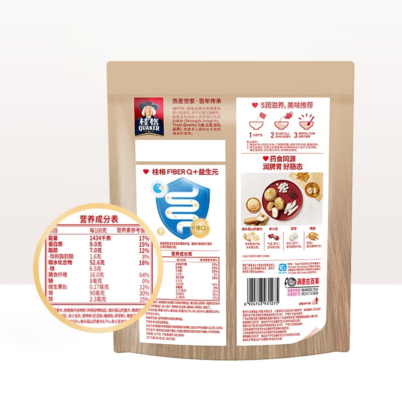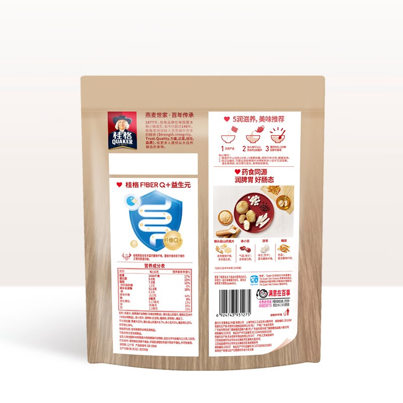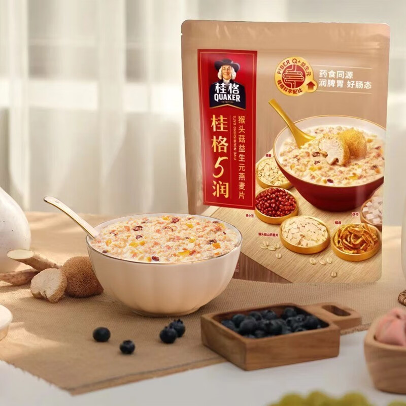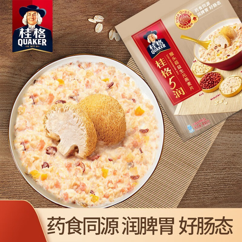 桂格/QUAKER 450 纯燕麦片 5润猴头菇益生元燕麦片450g/袋饱腹混合早餐代餐即食冲饮麦片