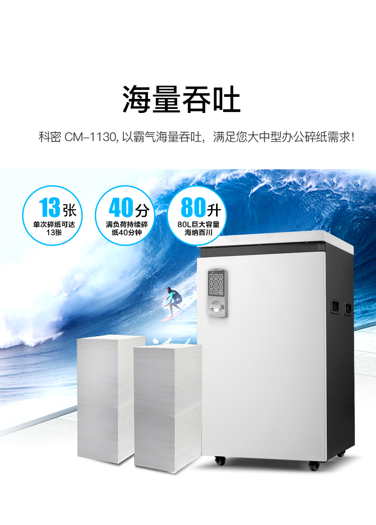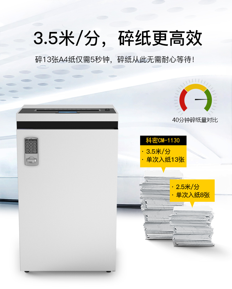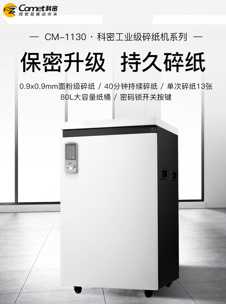 科密/Comet CM-1130 碎纸机 国家保密认证一级 0.9*0.9毫米 保密商用碎纸机 ( 13张/次 40分钟 80L)