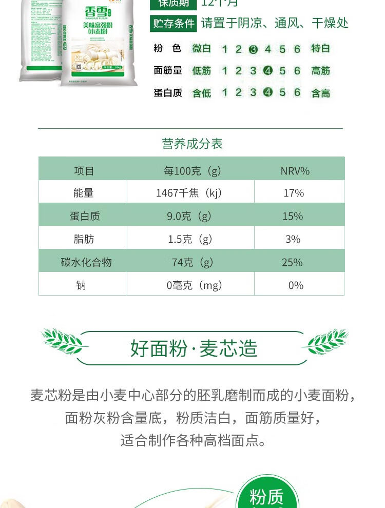 香雪 10kg 小麦面粉 面粉 美味富强粉 小麦粉 中筋面粉 20斤