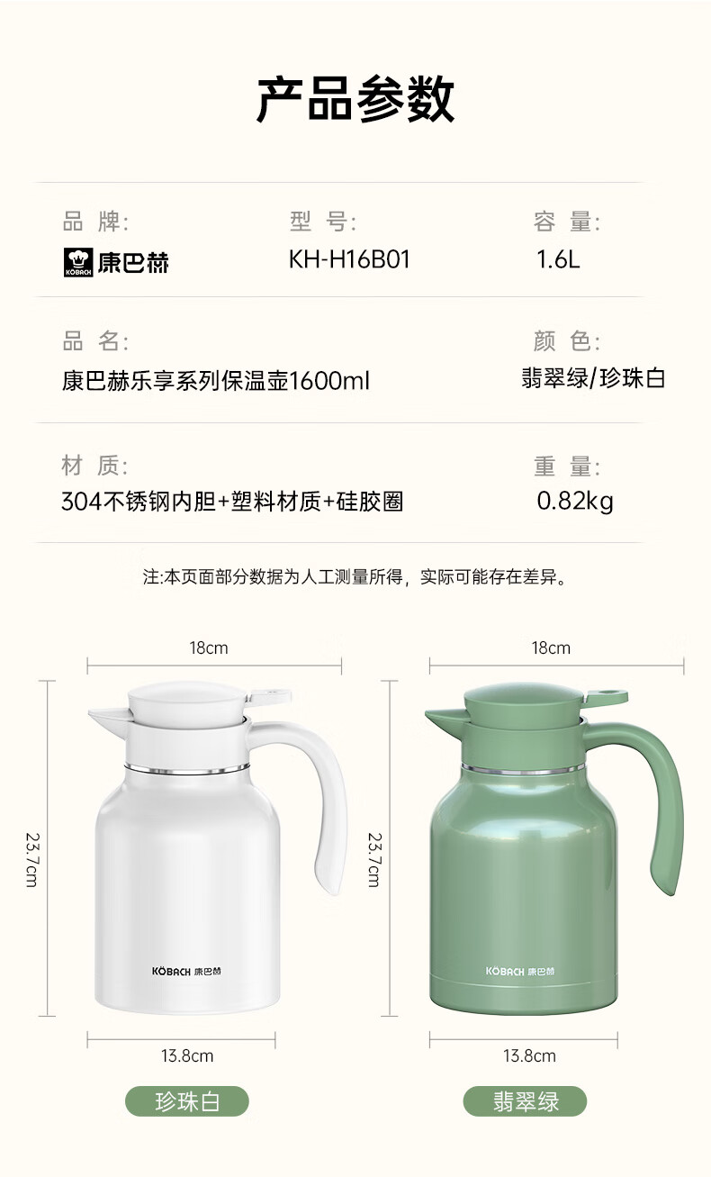 康巴赫/KBH KH-H16B01 壶 乐享系列保温壶1600ml