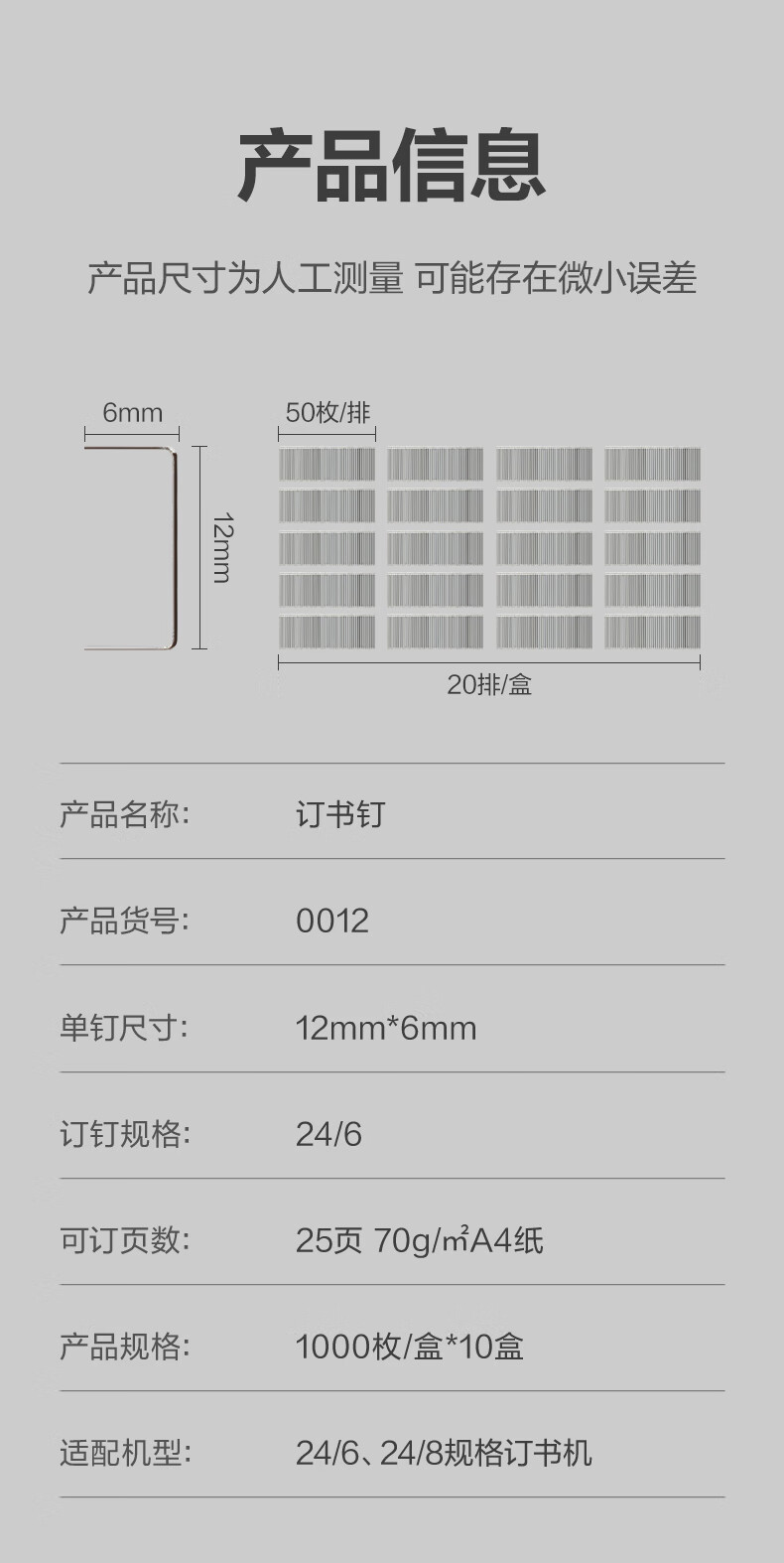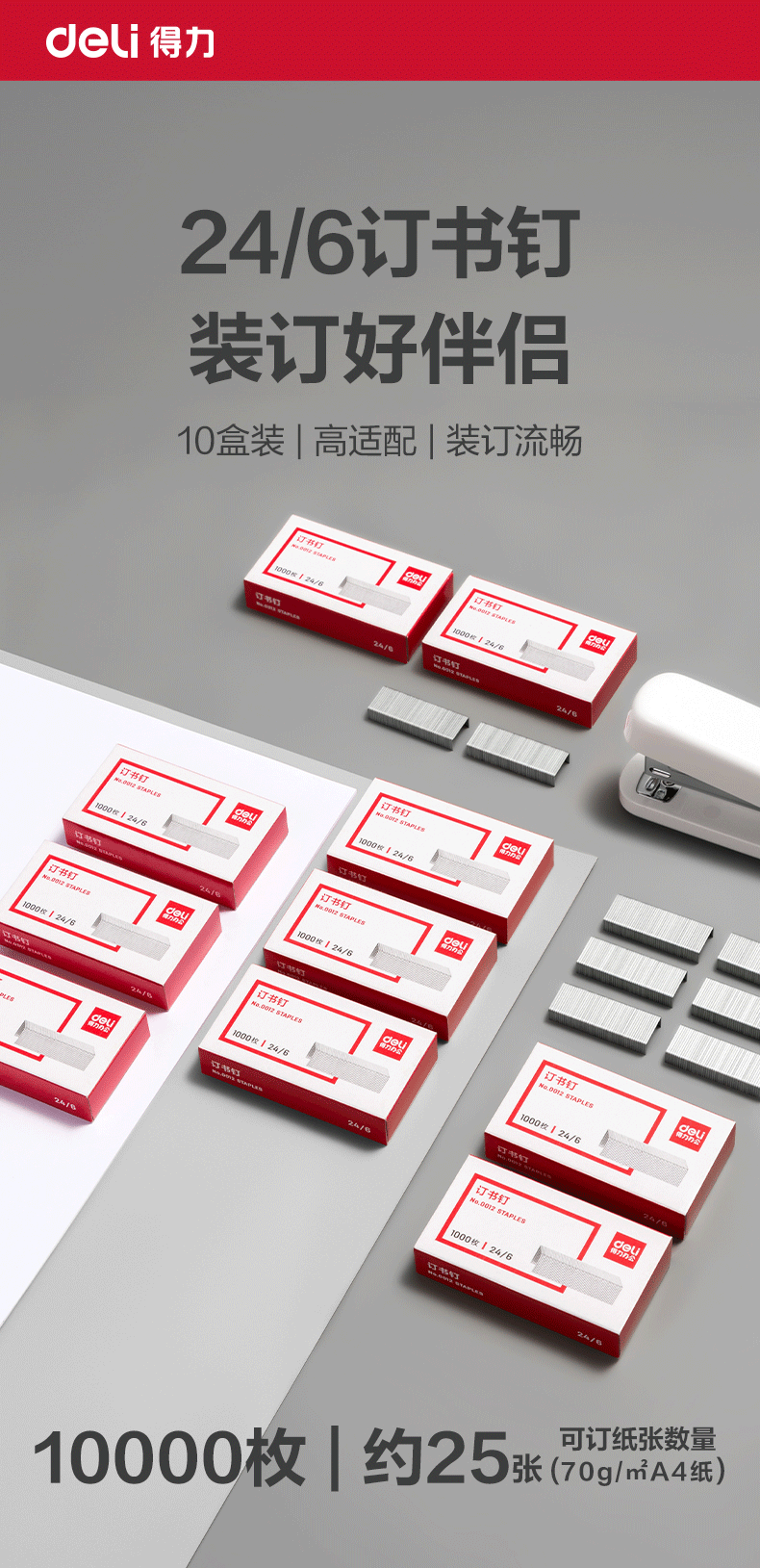 得力/deli 0012 装订及打孔类 24/6高强度订书钉 12#订书针 1000枚/盒 10盒装