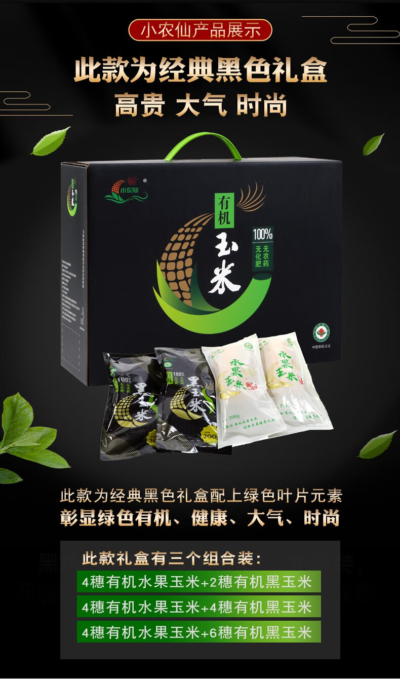 小农仙 200 鲜食玉米 健康食品 有机黑玉米2支+有机水果玉米4支