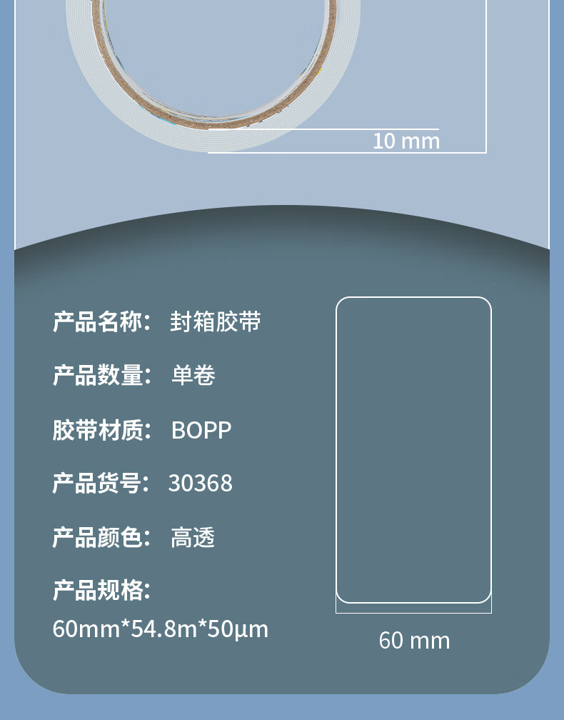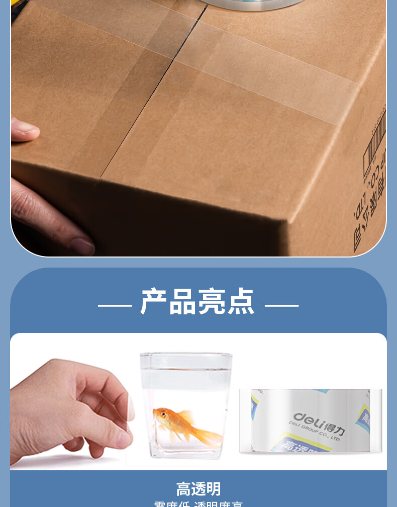 得力/deli 30368 胶带 打包胶带 60mm*50y*50um(45.7m/卷) 1卷 办公用品